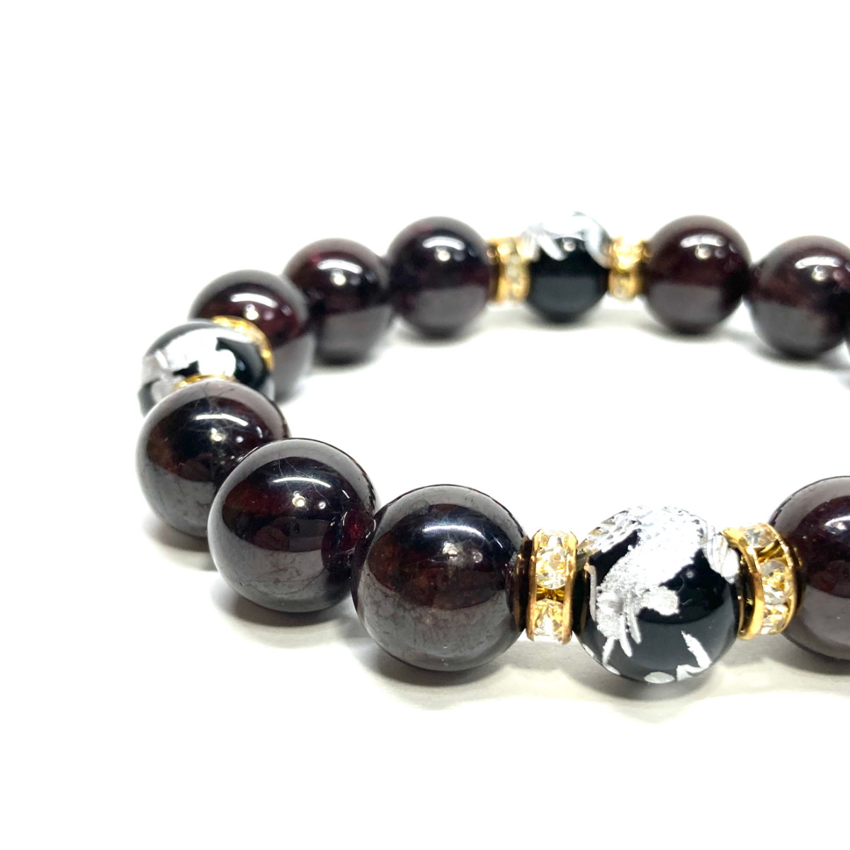 四神獣銀彫オニキス×ガーネット 12mm パワーストーン ブレスレット天然石 青龍 白虎 玄武 朱雀 運気上昇 開運 金運 お守り 四神相応 G