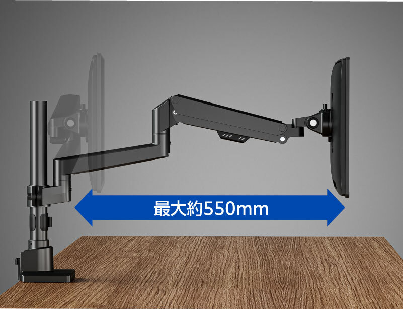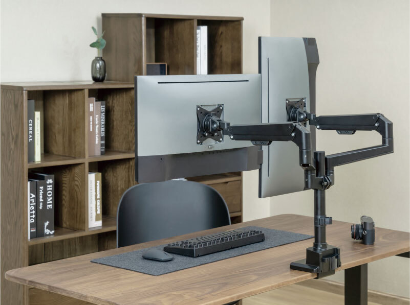 机の上を広く使え、画面を軽い力で上下左右、前後に動かすことができ、画面位置を頻繁に変更したい方におすすめです。