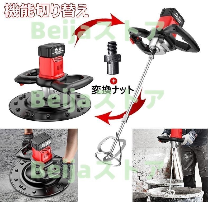 【幅広い用途】多目的、各種中粘度液の混合に適し、セメント、コンクリート、グラウト、泥、ペンキ、モルタルなどを含む。 建設作業、プロの建設チーム、または民家の改築に役立ちます。床の研磨など。充電式トロウェルモルタルやセメントの凹凸を簡単に取り除き、広い面積でコンクリートの床を平らにすることができます。作業効率をスピードアップし、時間と労力を節約し、作業結果の品質を向上させます。この製品は、他の研磨機のさまざまな直径 38cm アクセサリーにも適しています。
