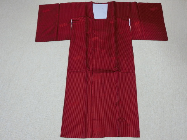 | 【昭和 レトロ】アセテート 雨コート 赤色 黒縞井桁柄 道行衿 女性用 古着 リサイクル | |
