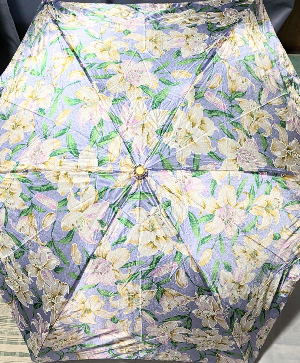 ★中古品です。使用頻度はあまりなく汚れやキズなどはありせん。長年開けて使ってなかったので折り畳み時のシワがあります。写真を参照願います。タグ等も残っていないので材質は不明です。