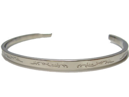 ★細身★人気★お勧め★肌に優しい★手入れ不要★金属アレルギー&温泉&海水浴ご使用OK★ステンレスバングル★唐草アラベスク★