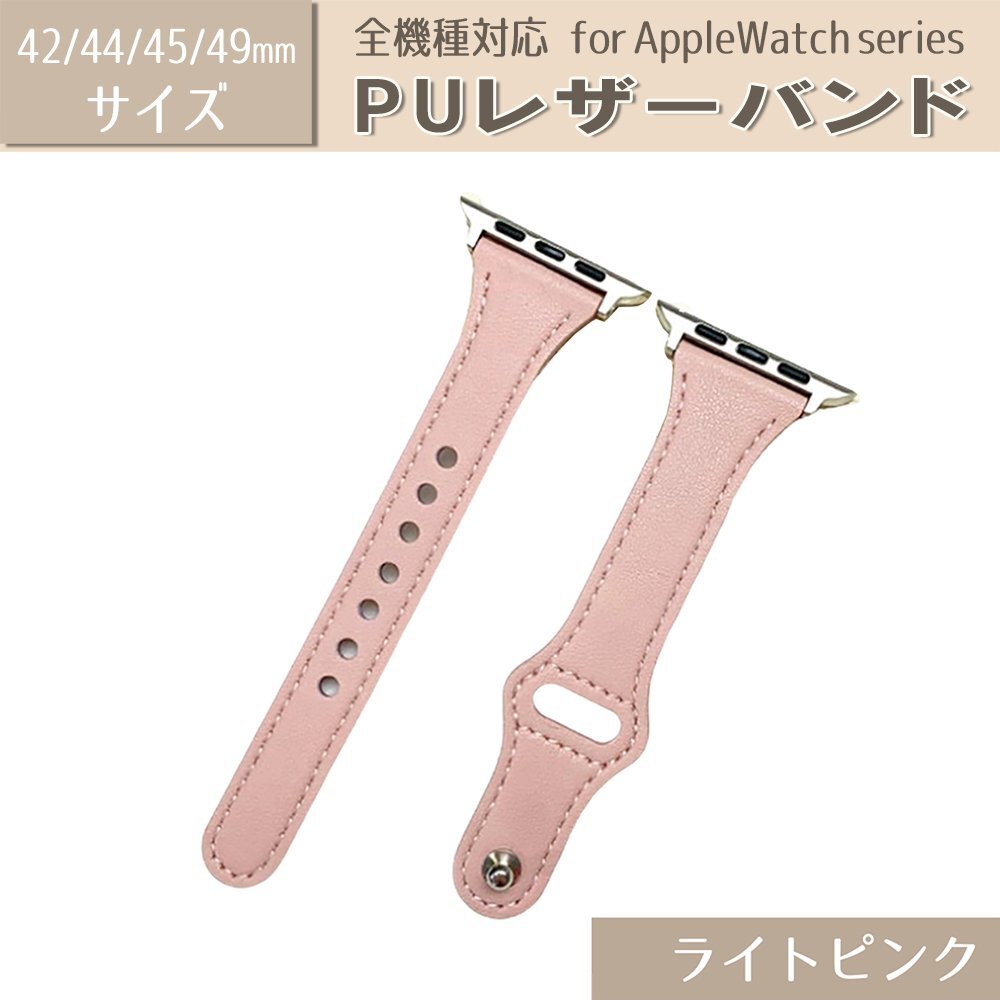 AppleWatch アップルウォッチ 時計 バンド ベルト PUレザー 交換ベルト 男女兼用 おしゃれ 42mm ライトピンク apwatchband8-42lp