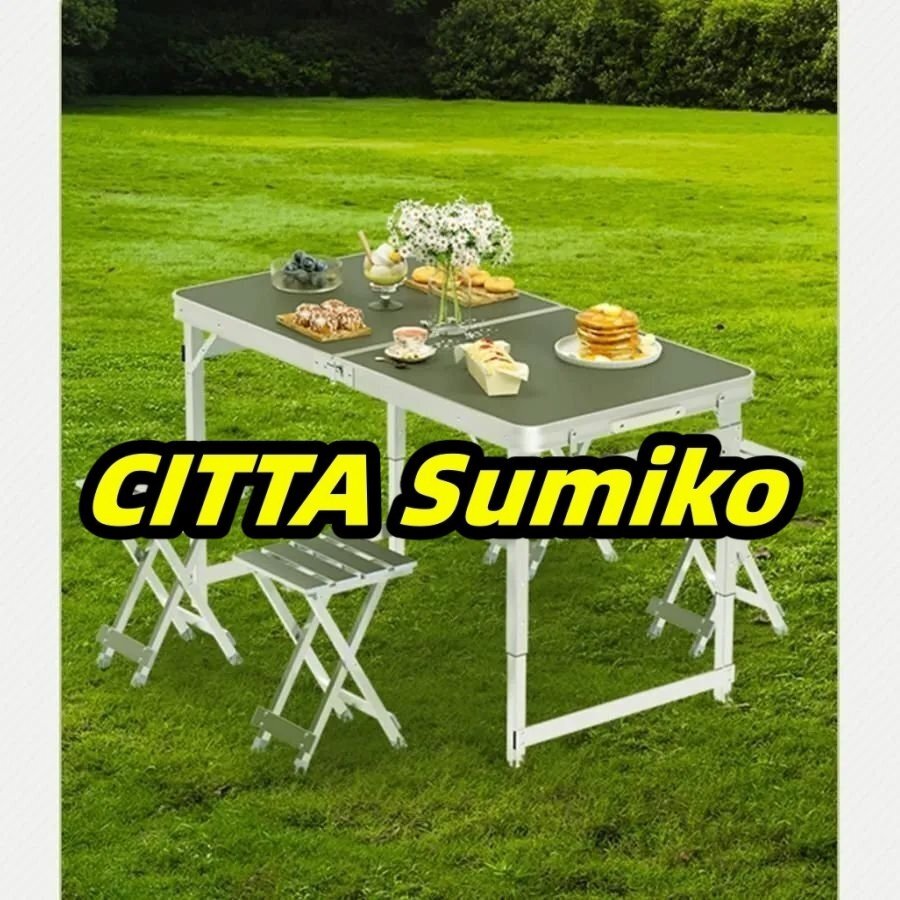収納便利 折り畳みテーブル アウトドア スツール4脚付き 作業テーブル キャンプ テーブル 折畳テーブル 軽量 持ち運び 室内 屋外 二つ折り