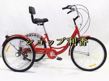 新品 大人用三輪車 24インチ 7スピード 男性女性向けショッピング 買い物かご付き 大人用三輪自転車 トライク マンパワーペダル 三輪車 130