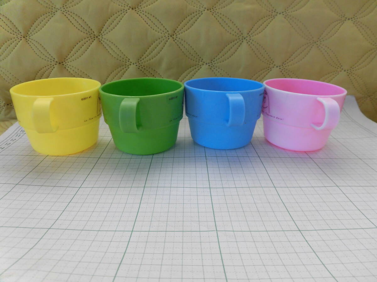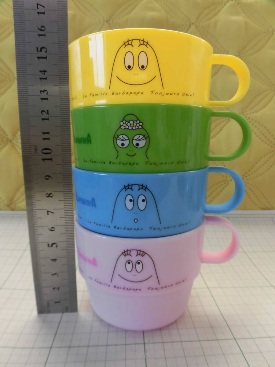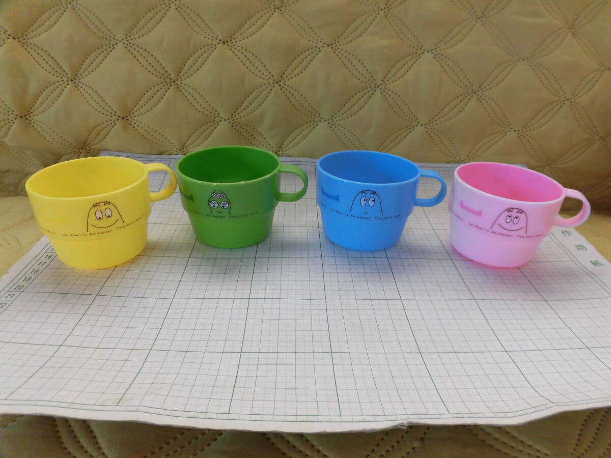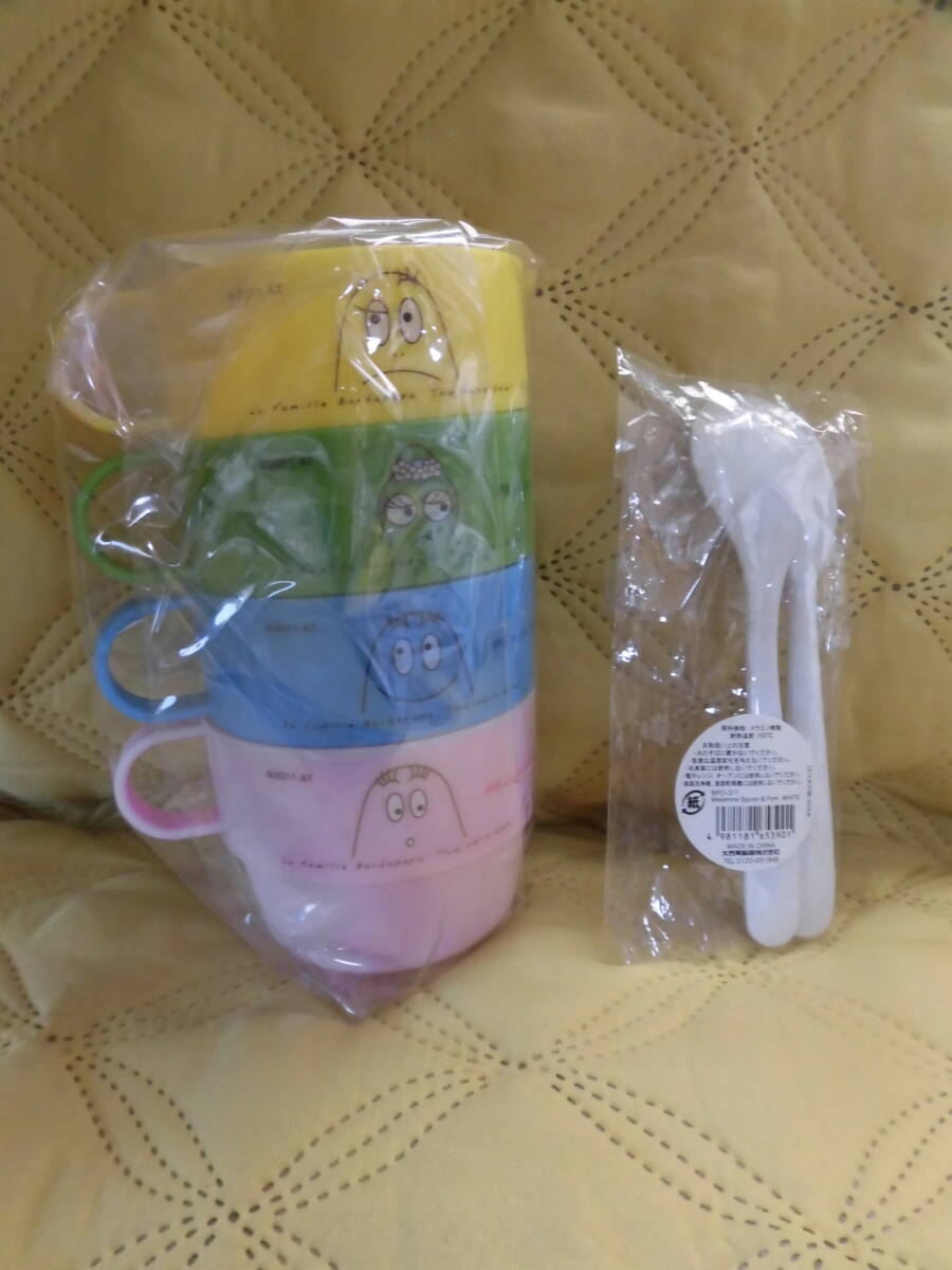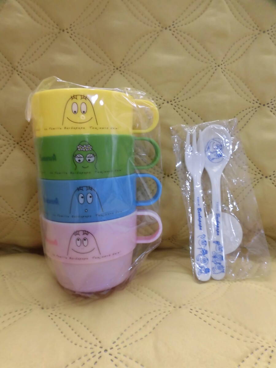 ****   バーバパパ プラスチック製マグカップ4点とメラミン製スプーンとフォーク   ****   (2419)
