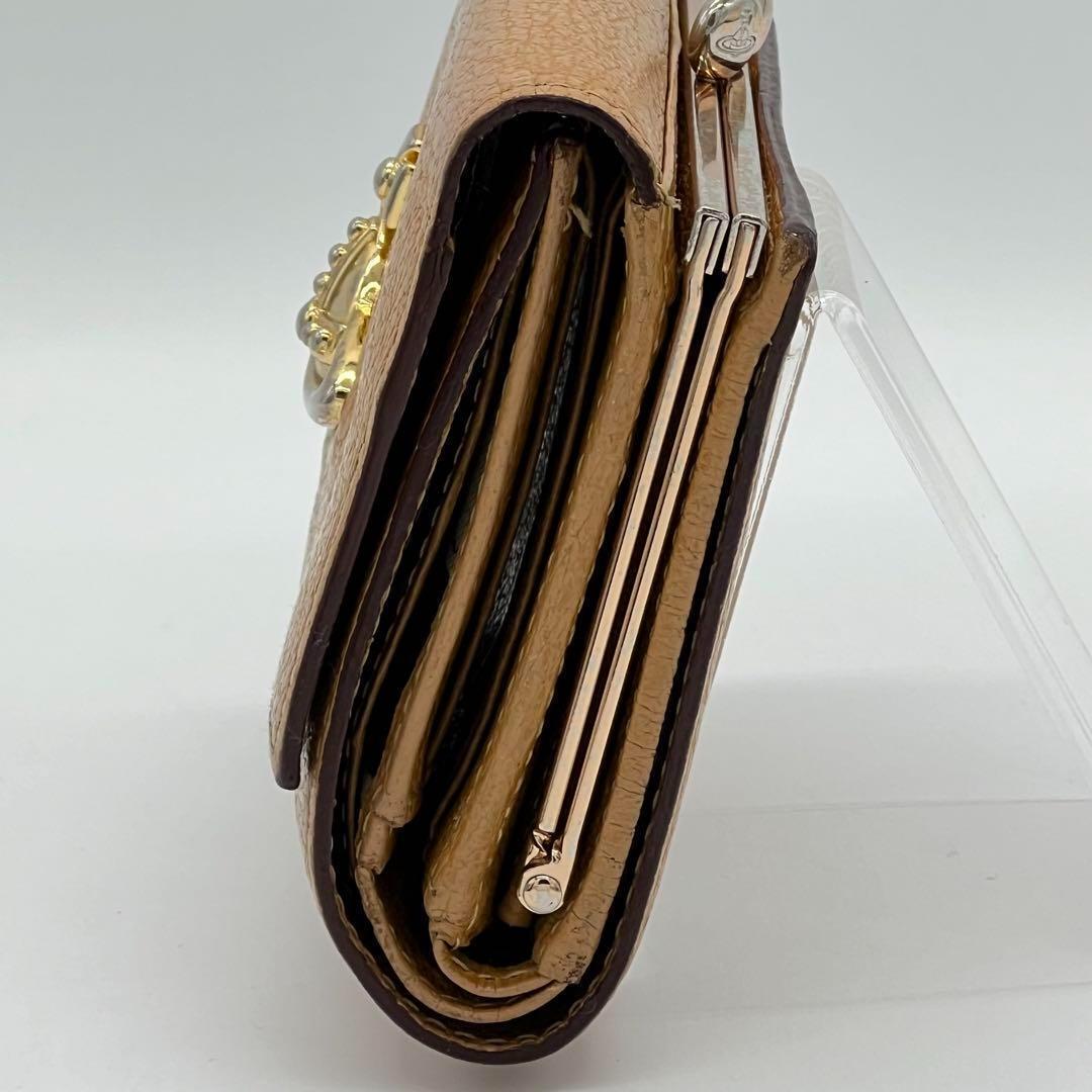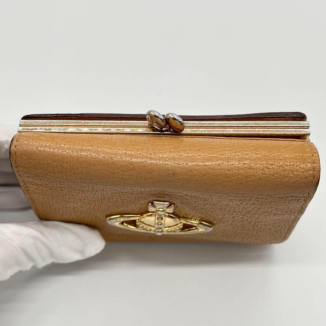 【良品】Vivienne Westwood ヴィヴィアン 三つ折 がま口財布 エグゼクティブ 金具 フォーマル オーブ レディース キャメル BJ000317