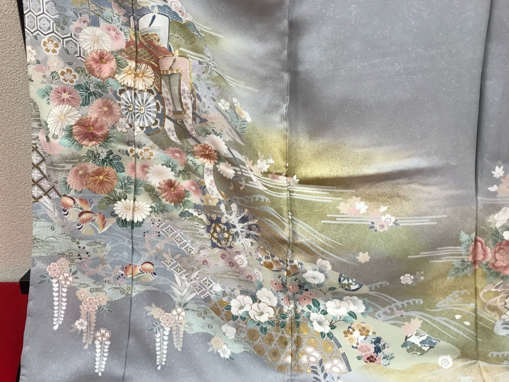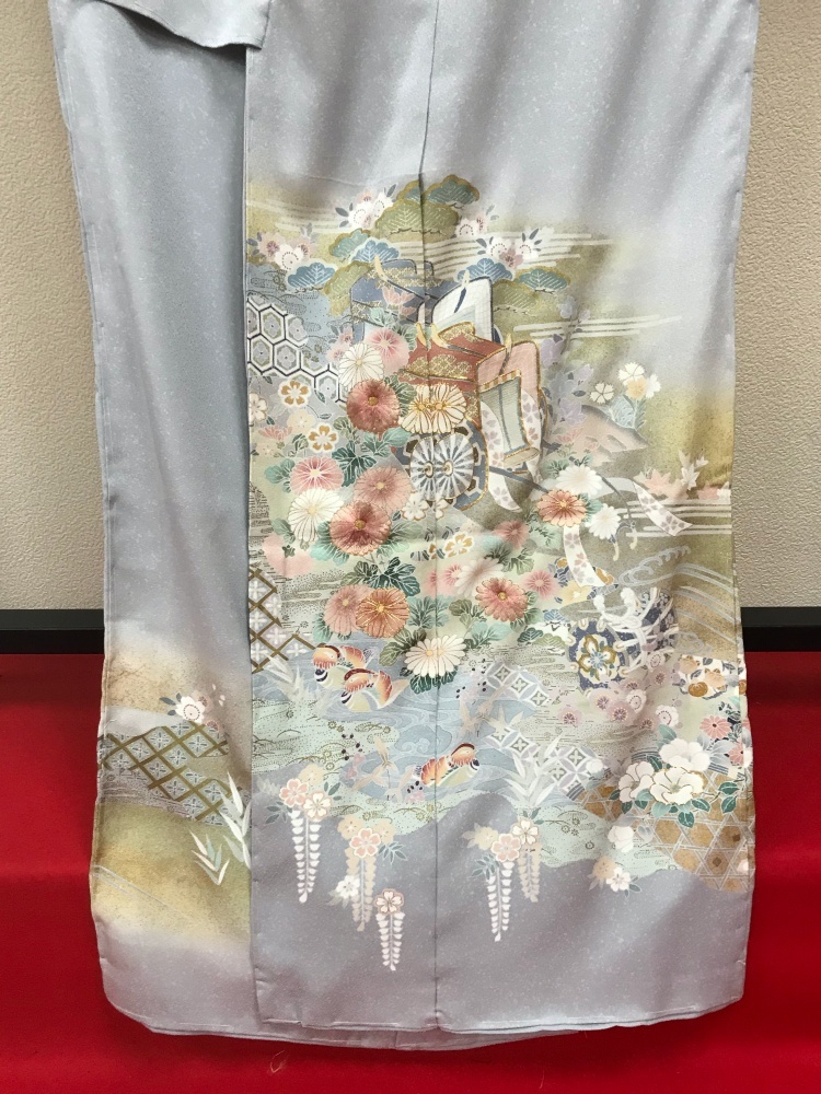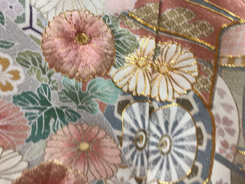 訪問着 2-12 薄グレー系 京友禅 刺繍 金加工 丹後ちりめん