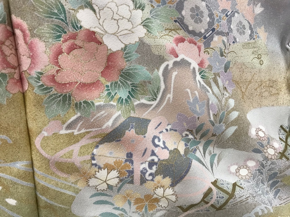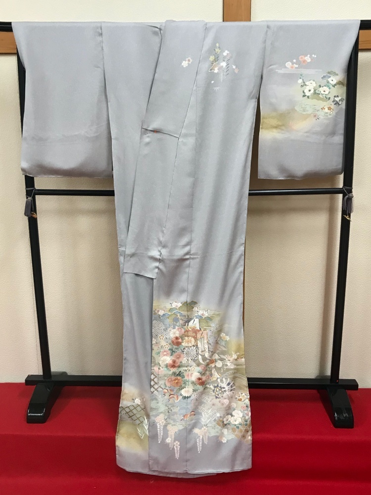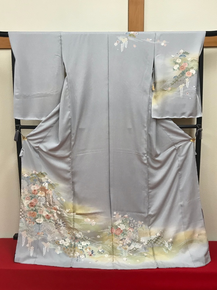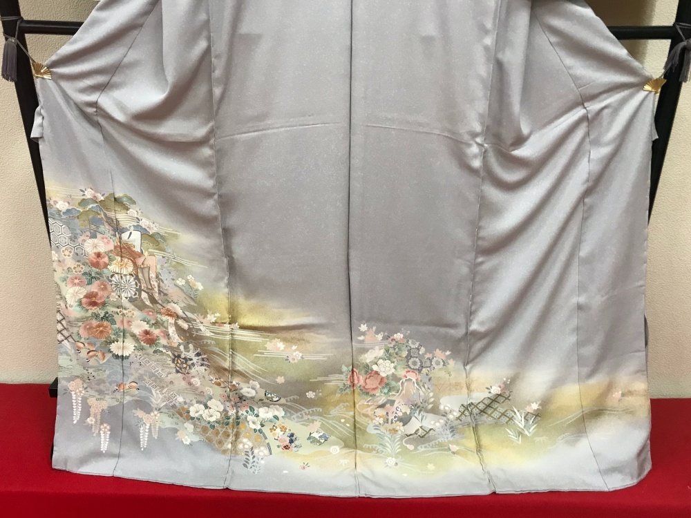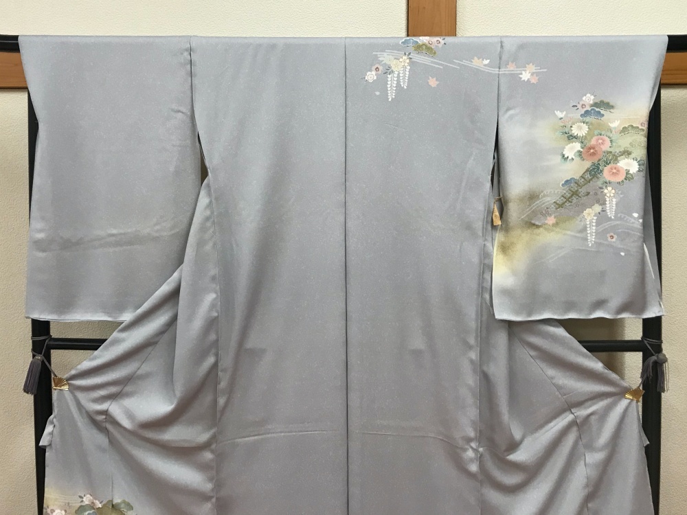 訪問着 2-12 薄グレー系 京友禅 刺繍 金加工 丹後ちりめん 未仕立て