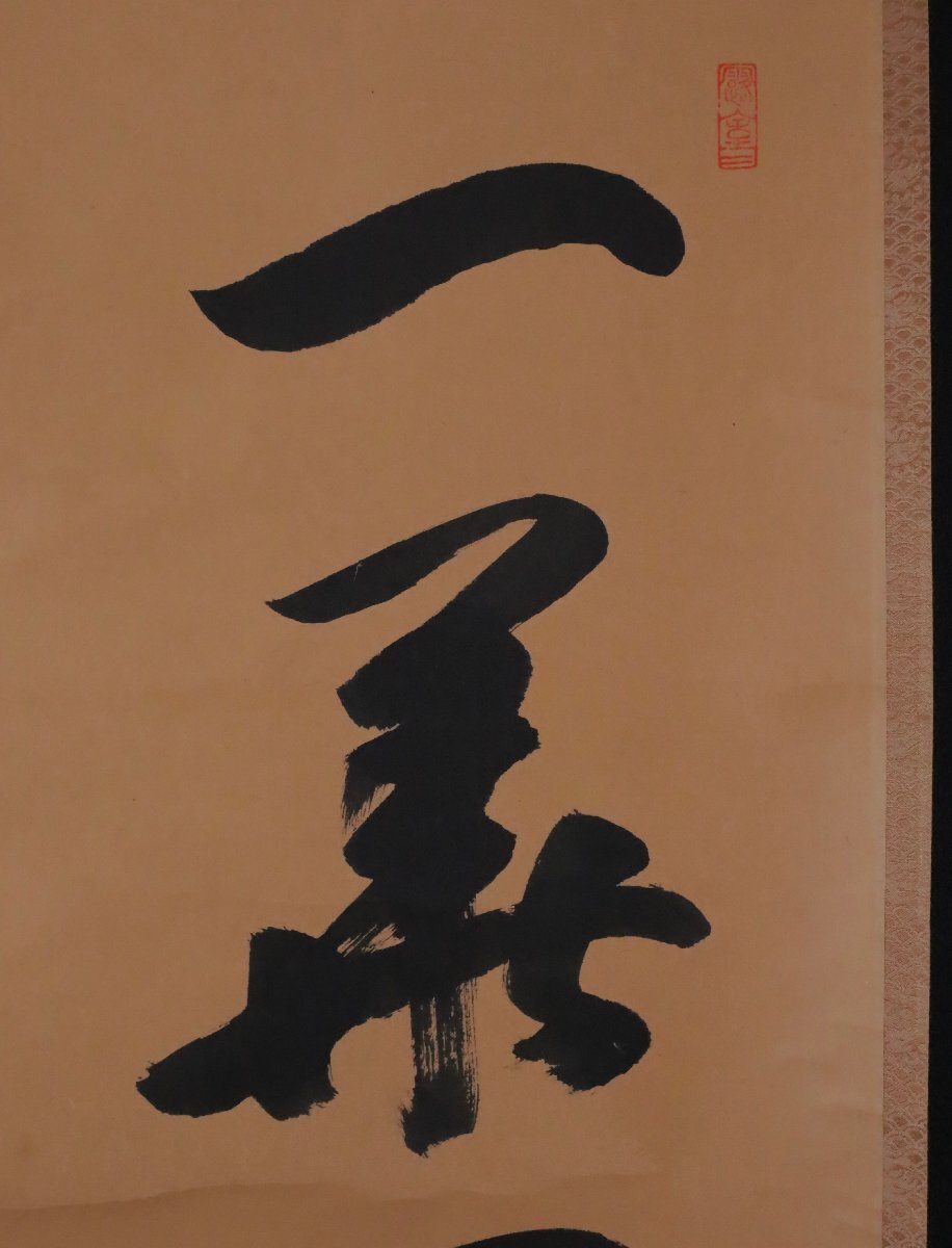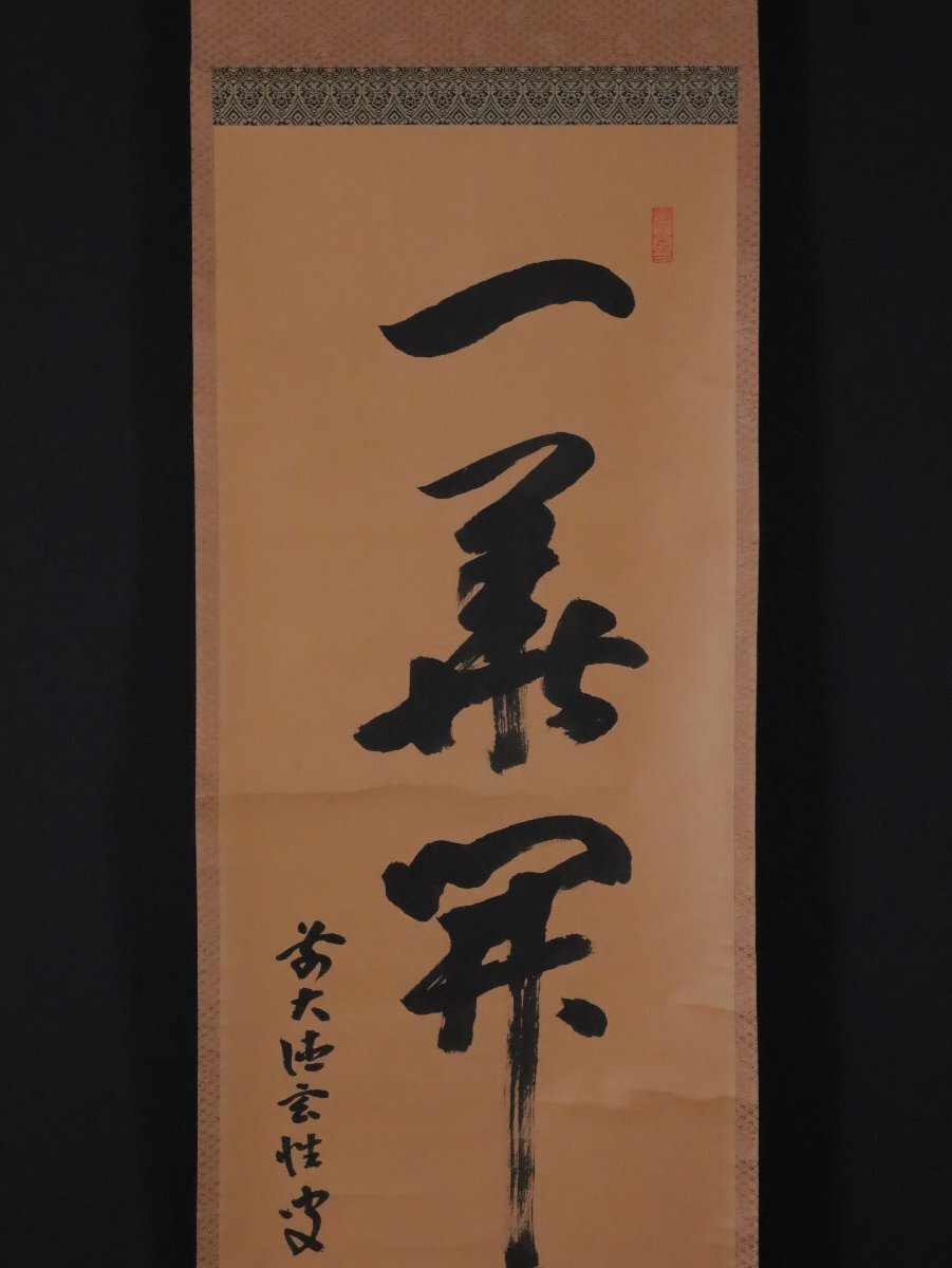 【模写】吉】11775 宮西玄性 書「一華開五葉」 共箱 臨済宗 大徳寺 黄梅院住職 仏教 茶掛け 茶道具 禅語 掛軸 掛け軸 骨董品