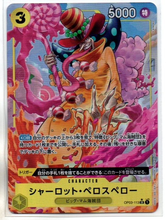 PRB-01 ONE PIECE CARD GAME ONE PIECE CARD THE BEST シャーロット・ペロスペロー (SR★:スーパーレア:パラレル:OP03-113) 1枚です。カードの状態はパック開封後スリーブに入れて保管していました、未使用ですが初期傷等はご了承下さい。