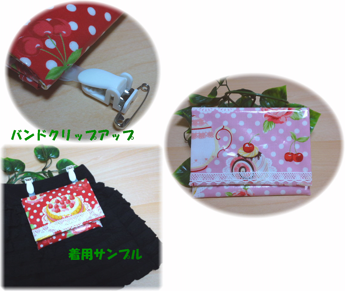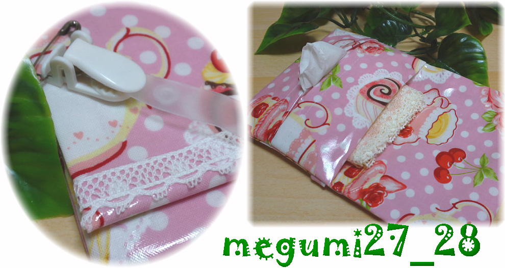 ■SALE■<移動ポケット>ケーキ柄ピンク♪ポケティケース♪ラミネート加工♪ハンドメイド