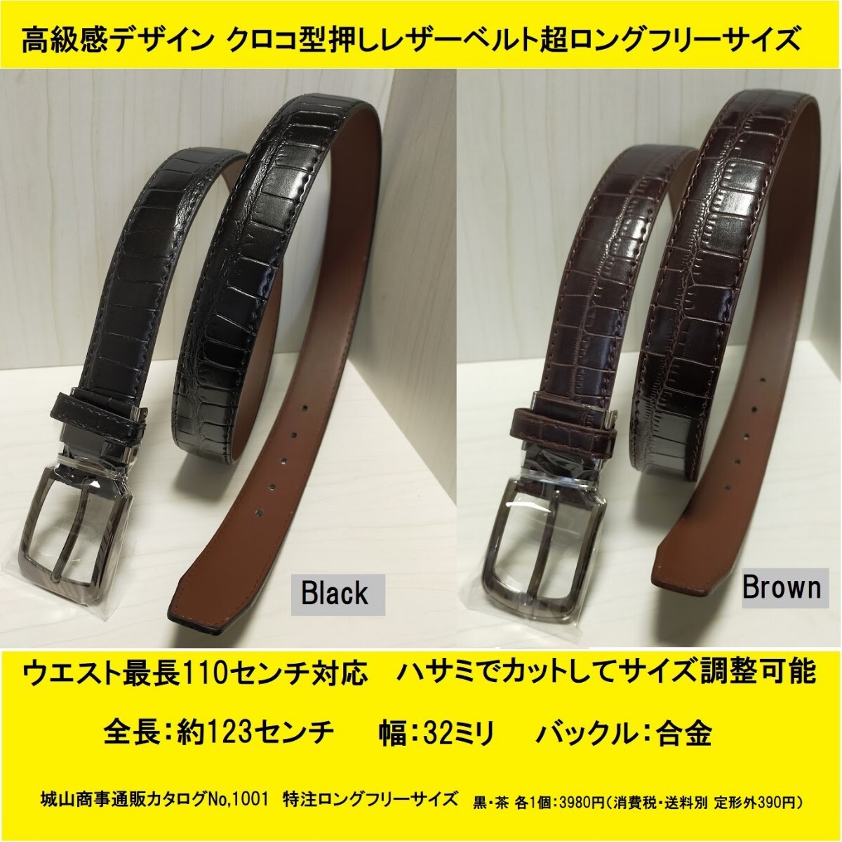 即決価格【消費税 送料すべて込み】【グレードアップして新登場】高級感【新品】クロコ型押しレザーベルト 黒 ブラック ロングフリーサイズ
