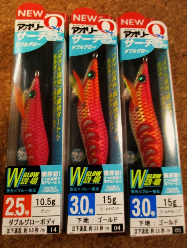 新品 未開封 3個セット YO-ZURI アオリ― Qサーチ ダブルグロー 2.5号 3.0号 夜光 グロー ダート DUEL エギ ヨーヅリ エギ 餌木