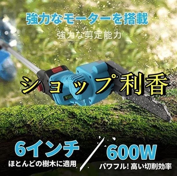 【強力ブラシレスモーター】 6インチ高枝切りチェーンソーはブラシレスモーター設計を採用している。出力は600ワットで、直径8 CMの原木を切断するのに4秒ほどかかります。より大きな動力、より長い寿命、より速い冷却速度、より高い効率を提供することができます。