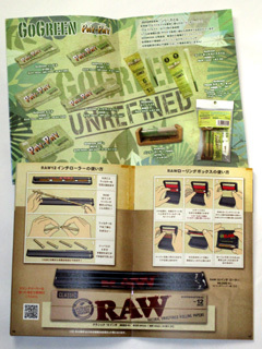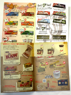 「"GOGREEN"PAYPAY」「ZEN BLUE」「fuzzglide」「JUICY JAY」「Skunk Brand」の喫煙具をまとめた小冊子カタログ(6ページ)も付属します。
