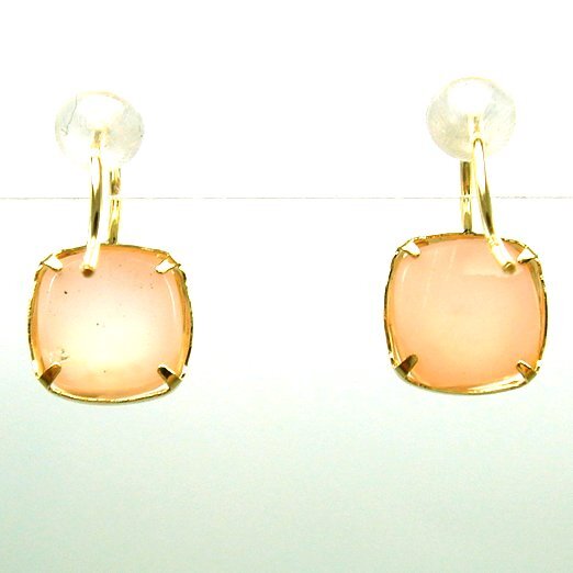 PC1694:K18YG ピンクオパール 水晶 ピアス