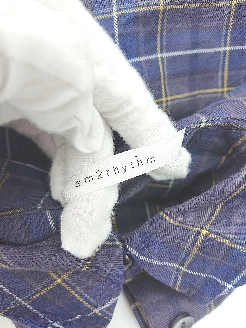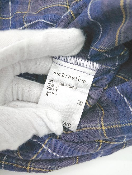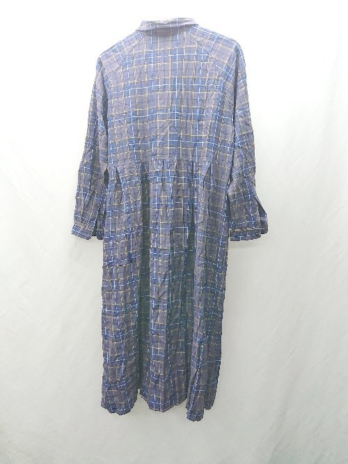 ◇ Θ sm2 rhythm サマンサモスモスリズム チェック柄シャツ 長袖 マキシ丈 ワンピース サイズF ブルー系 レディース E