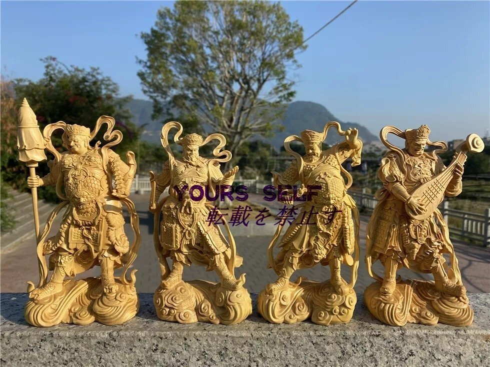 極上品 ★木彫り 仏像「四天王立像」持国天・広目天・増長天・多聞天 高級天然ツゲ木彫り 縁起仏像 毘沙門天 守護神