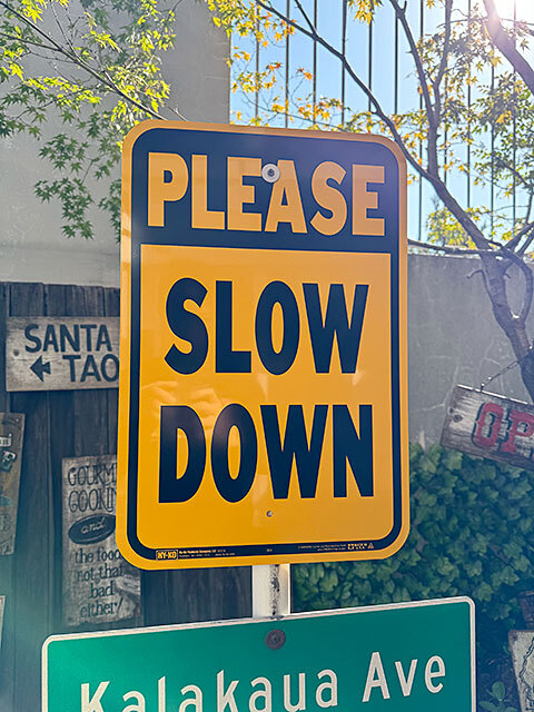 デザインは、「ゆっくり走ってください」と、「徐行」を知らせる注意看板!