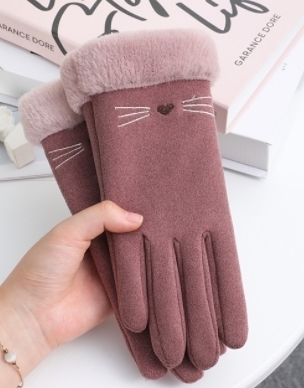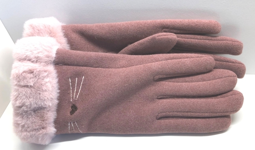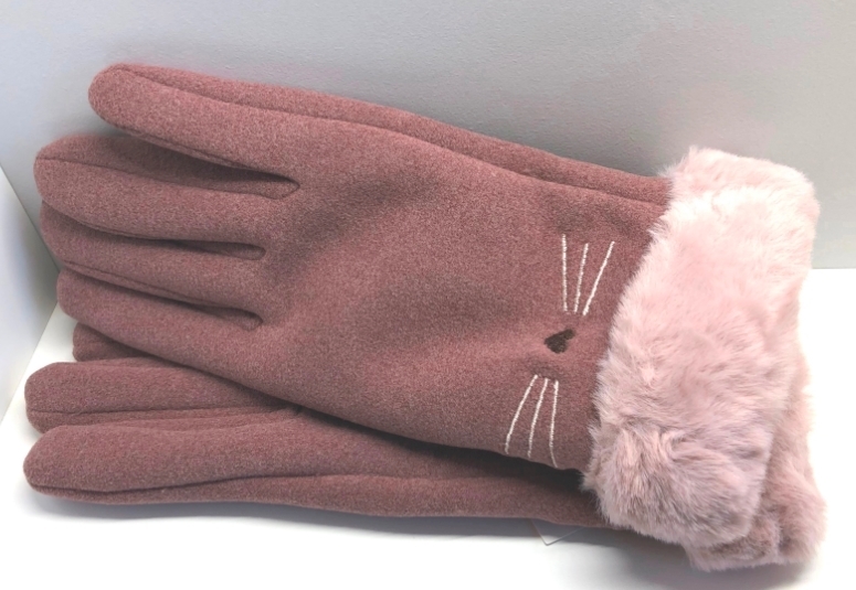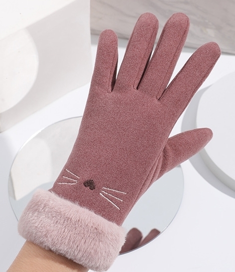 手袋 レディース(B308)裏ファー あったか スマホタッチ対応 ネコ柄刺繍 あずき