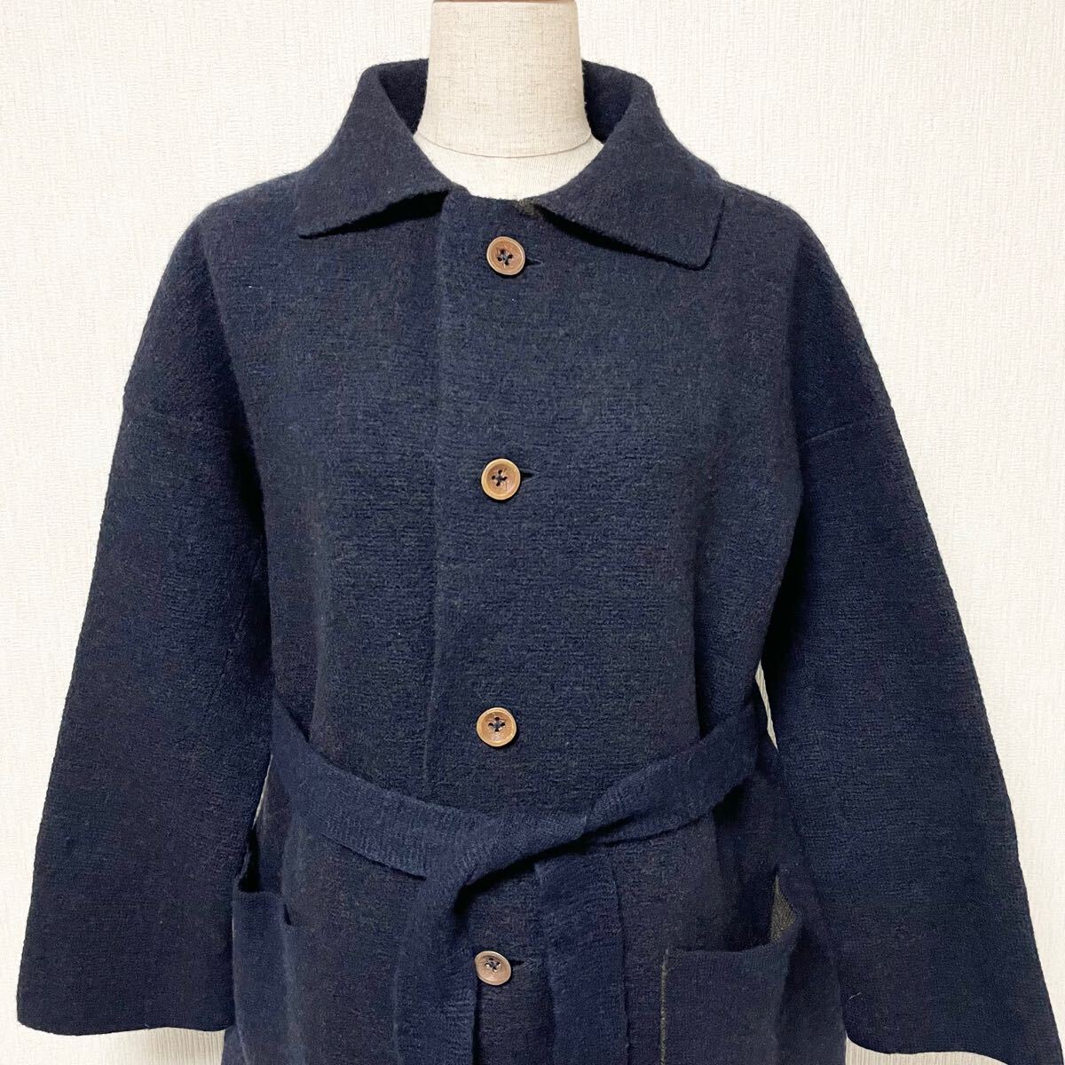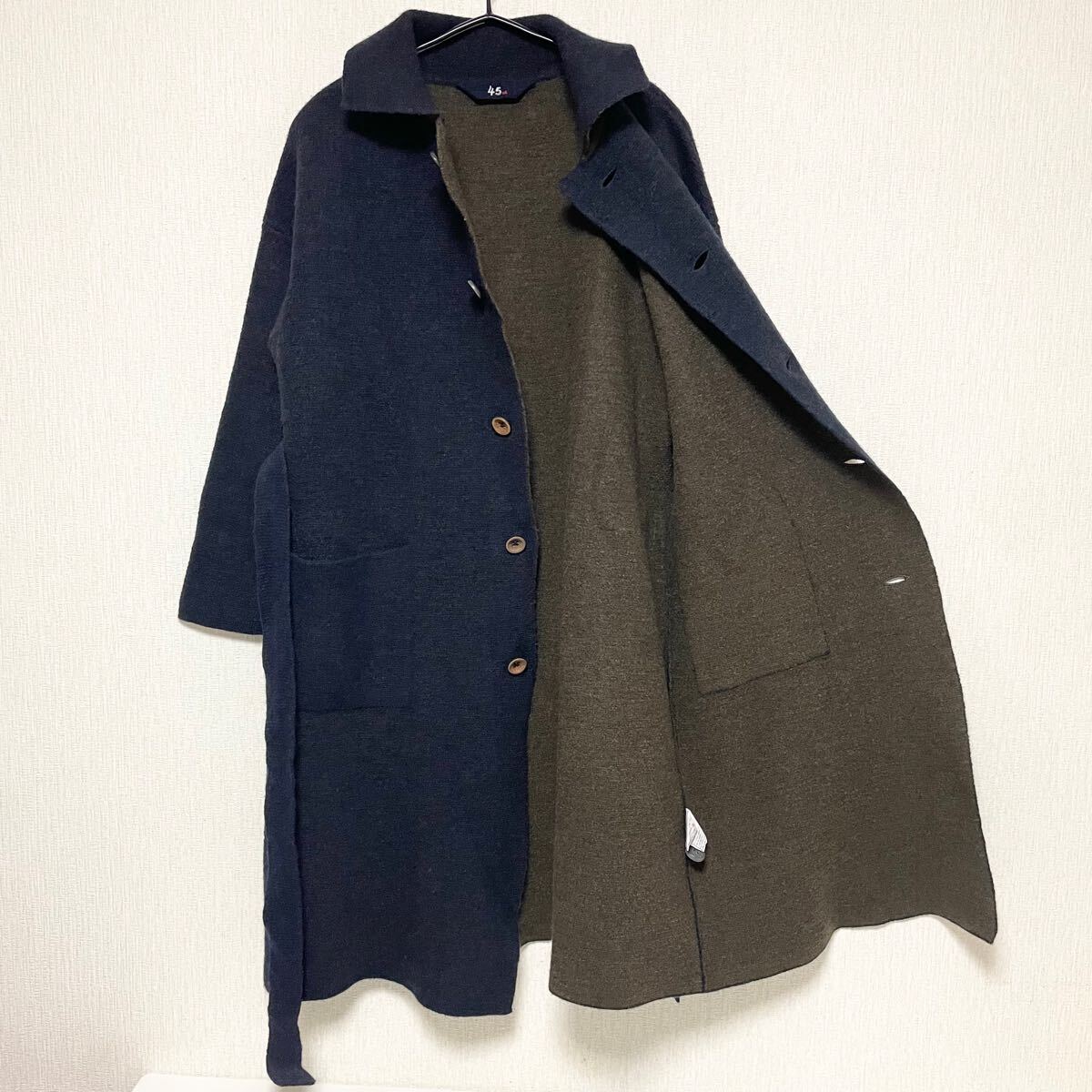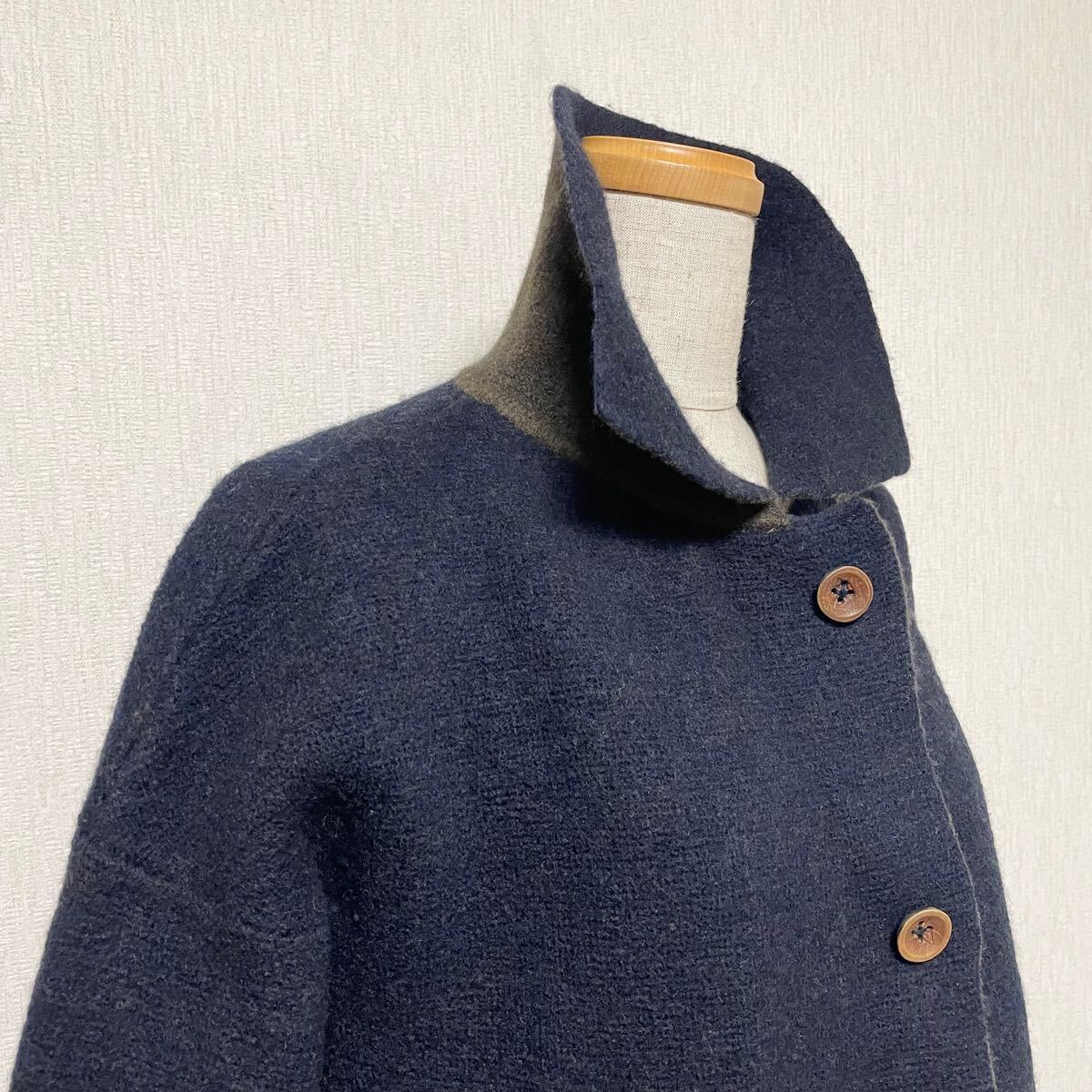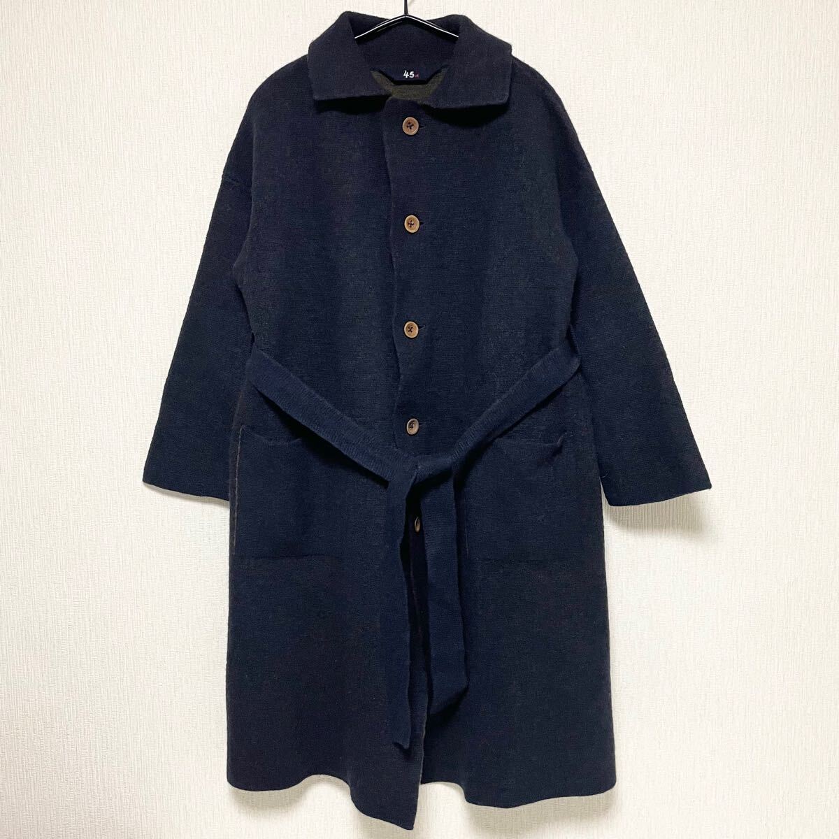 即決☆45rpm フォーティファイブアールピーエム ウール ロング ガウン コート 2 美品 M ネイビー