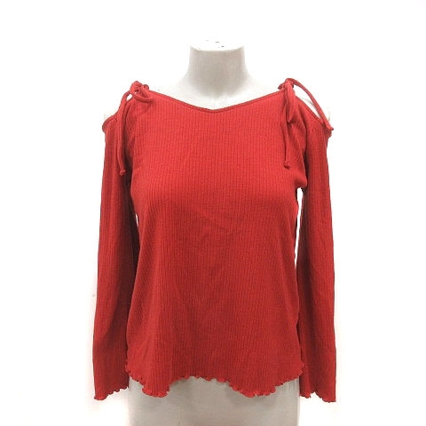 マウジー MOUSSY ニット カットソー オープンショルダー リボン リブ フレアスリーブ 長袖 F 赤 レッド /MS レディース
