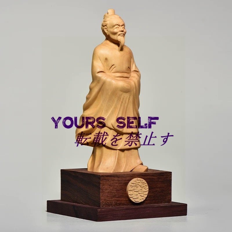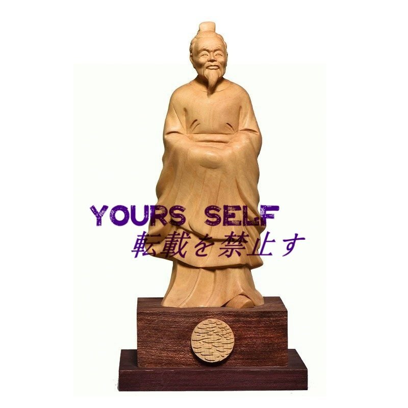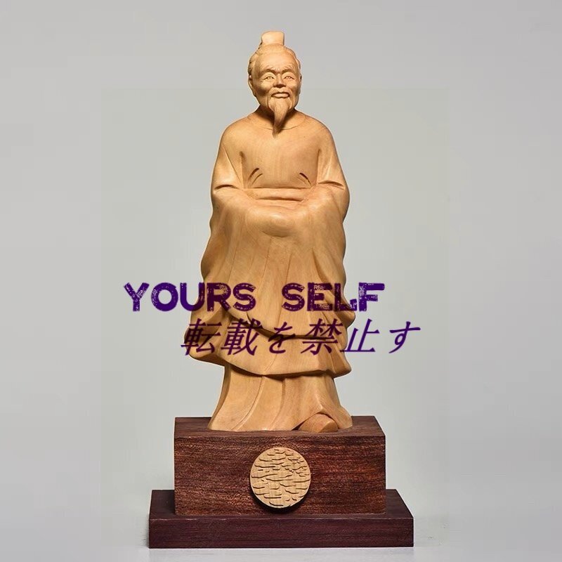孔子 彫刻 置物 中国 天然木 柘植