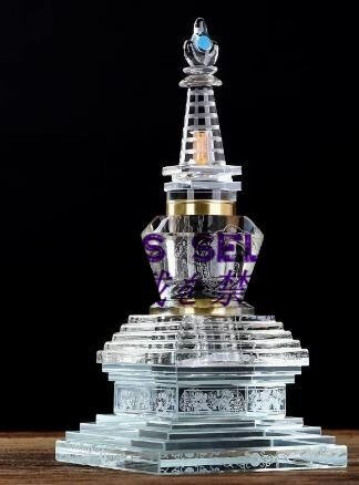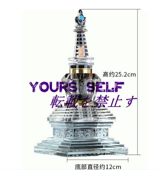 密教法具 水晶【五輪塔】 総高25.2cm 風水置物 風水グッズ 法器 仏具 開運 お守り