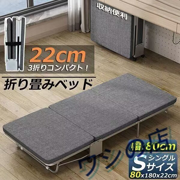 PH-3387 折りたたみベッド コンパクト シングル 三つ折り 耐荷重キャスター付 折り畳み シングルベッド 軽量 組立簡単