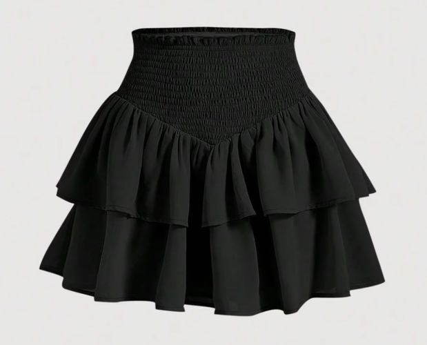 Mia muse-女性用ハイウエストレイヤードミニペプラムスカート、デイリーベーシックスカート、オールシーズン、プレッピー(Black,L)