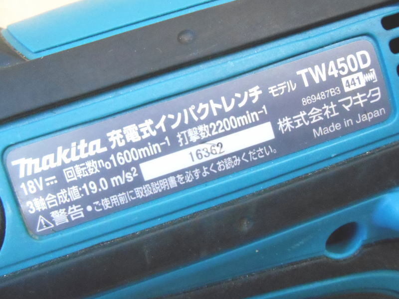 仕様 ●メーカー makita ●型式 TW450DZ ●外形寸法 W80×D260×H240mm(本体のみ、突起物含む) ●電源 マキタ18Vリチウムイオンバッテリー ■マキタ製、18V充電式インパクトレンチを激安価格にて提供いたしますので、この機会に是非よろしくお願いいたします。 ■画像記載通り当方所有のバッテリーを使用して動作確認済みとなっております。正転、逆転の回転動作、ライトの点灯も問題ありません。ソケットを取り付けて負荷をかけてみましたが、トルクもちゃんと出ておりますので、よろしくお願い致します。 ■消耗品、消耗部品に関してはノークレーム、ノーリターンでよろしくお願いいたします。 ■本商品の詳しい仕様はこちらより取扱説明書をご確認ください。 ■当方専門業者ではありませんので、細かな動作まではわかりかねますので、細かな点でのクレーム等はお受けいたしかねますので、御了承下さい。 ■当方本商品に対して専門知識がありませんので、専門知識を要する質問、動作にはお答えいたしかねますので、ご了承の上宜しくお願いいたします。 ■動作確認、簡単な清掃も行っていますのでご検討宜しくお願い致します。 ■新品ではありませんので使用感や多少のキズ等あります。ご理解のうえ入札ください。コンディションに強いこだわりのある方はトラブルの原因となりますので、入札はお控え下さい。 ■画像にあるものが全てです。 ■その他ご質問はお気軽にどうぞ。 |