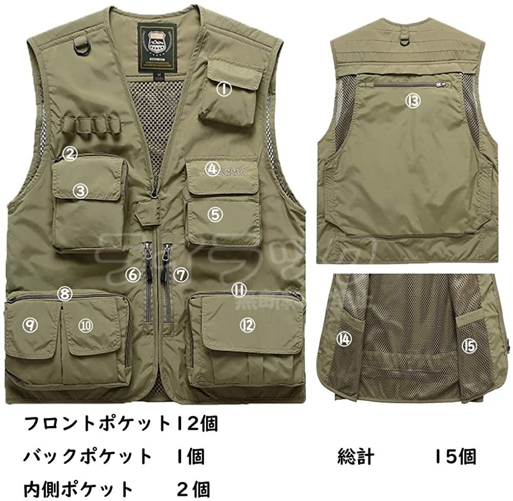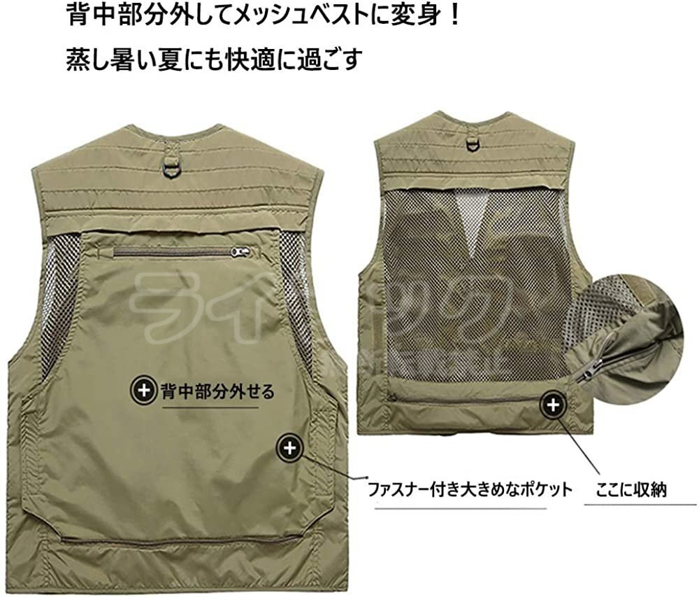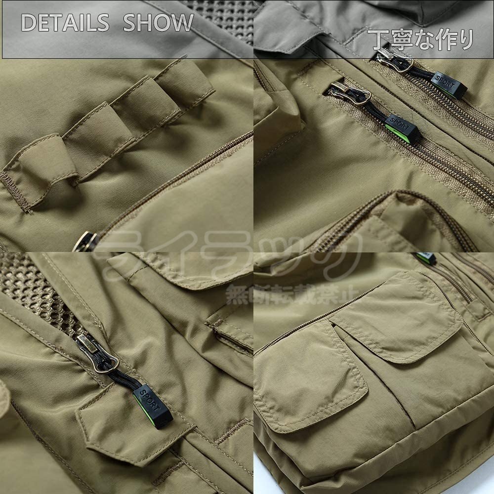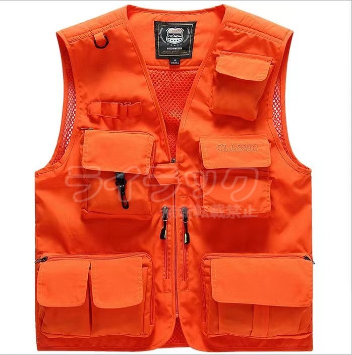 【オレンジ2XL】メッシュベスト カメラマンベスト フィッシングベスト 釣り 速乾 通気 多機能 防災 大きいサイズ 釣り 撮影用 登山 暑さ
