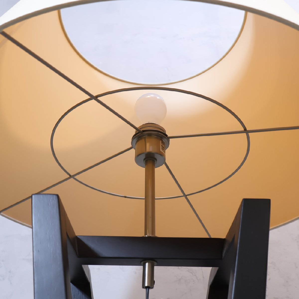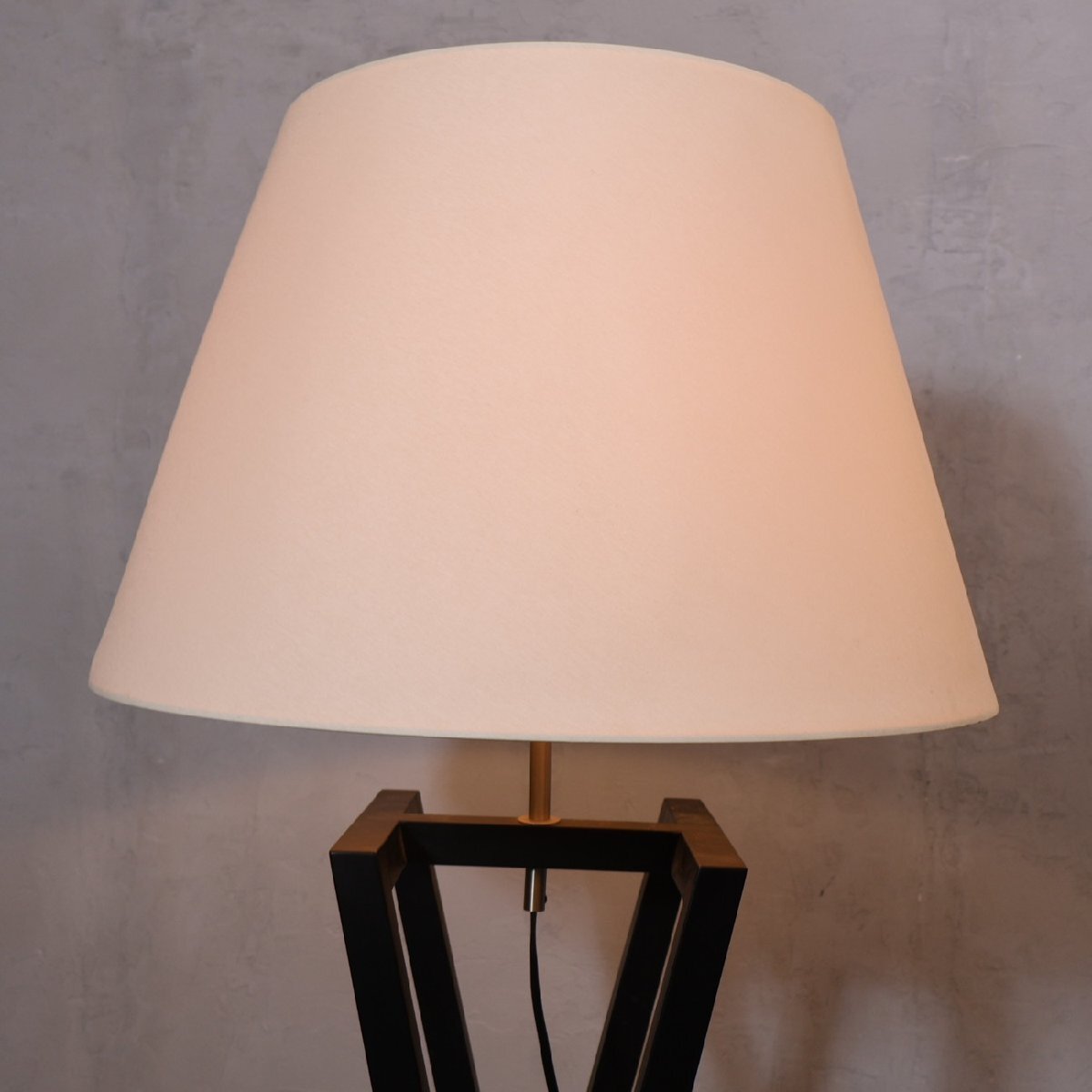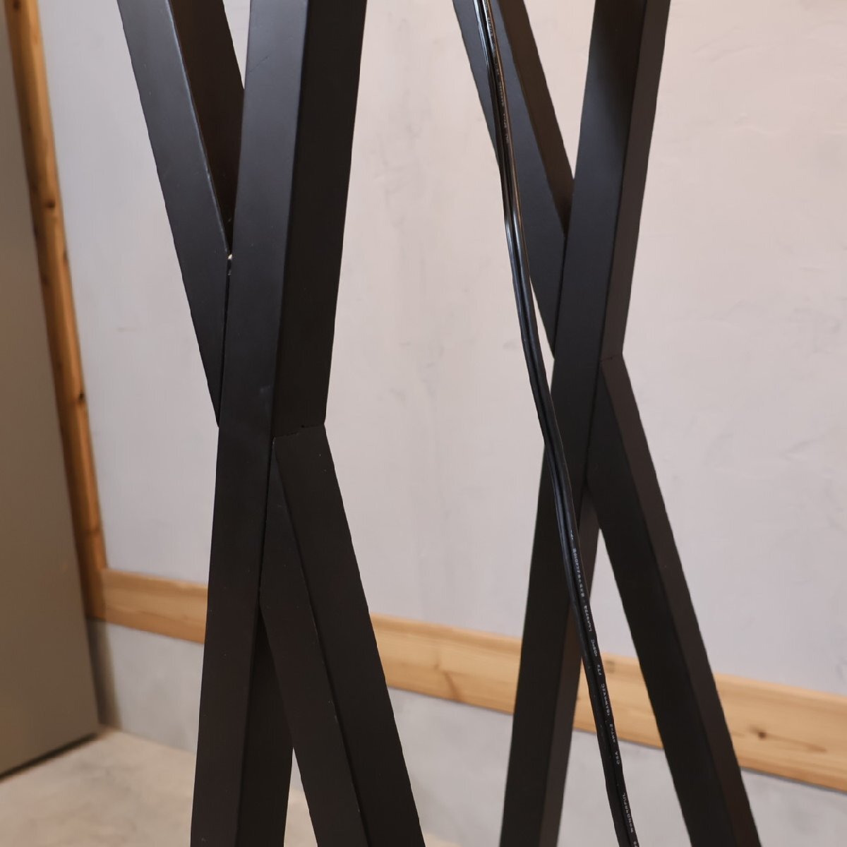 円形のシェードとクロスした脚が魅力的なシンプルモダンなスタンドライト。
