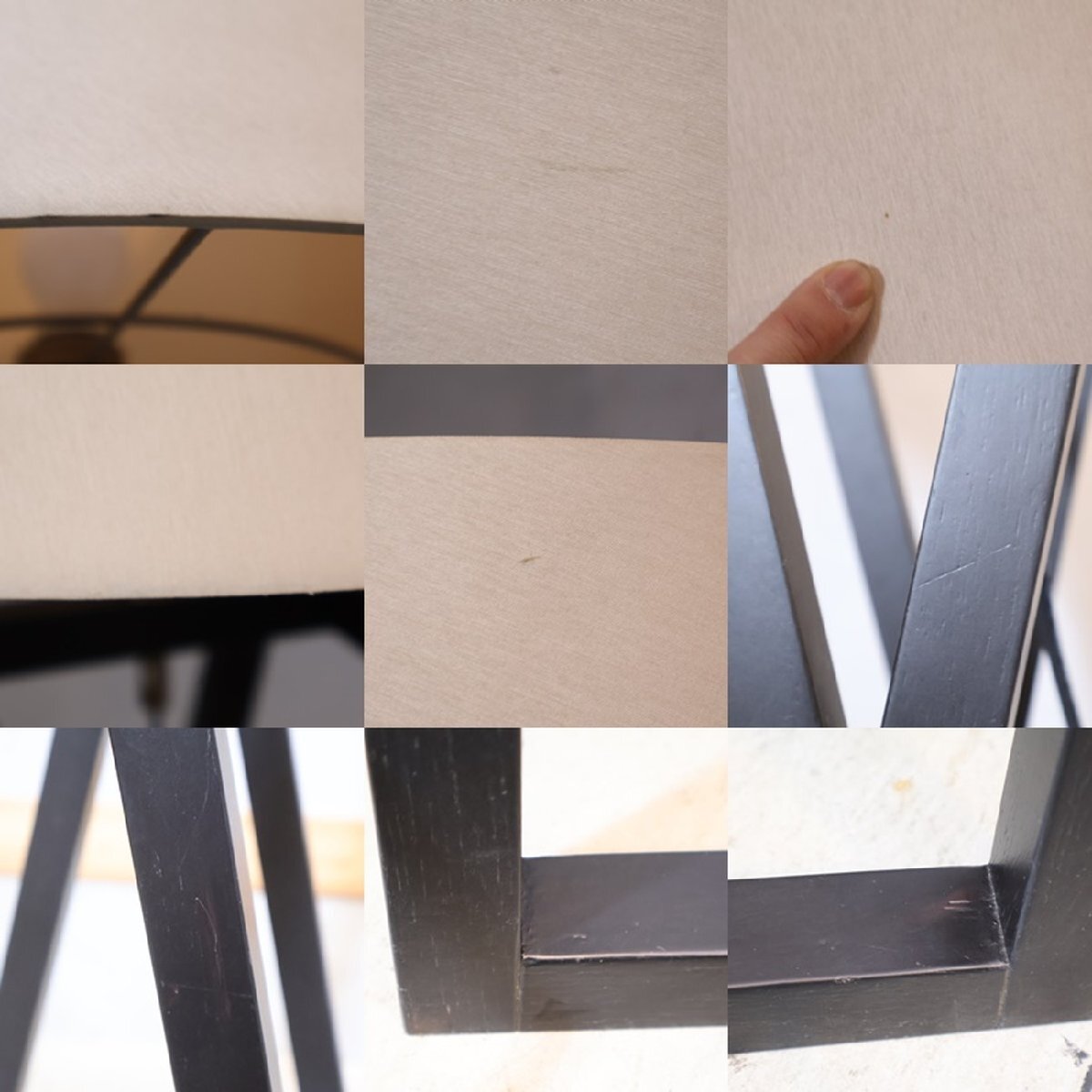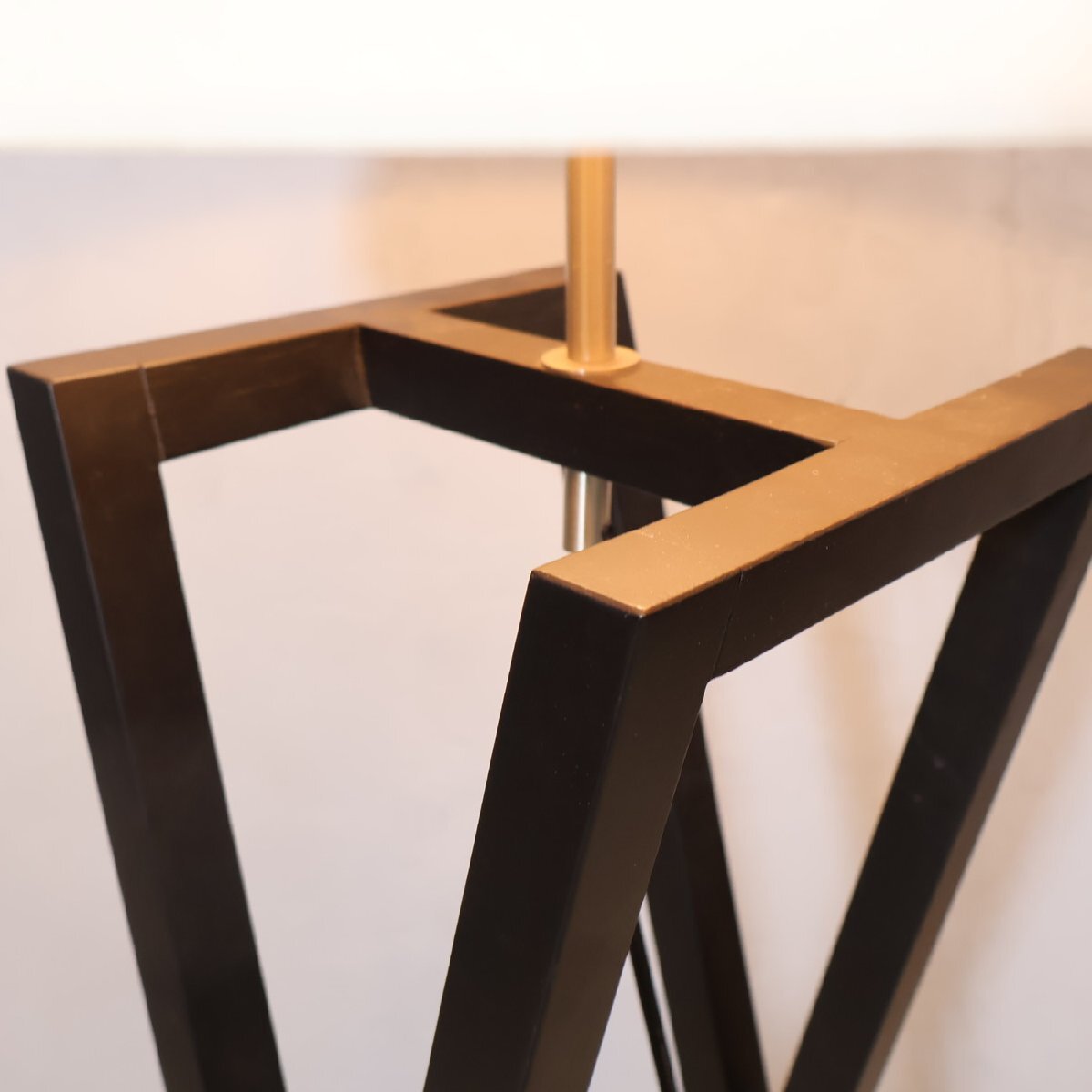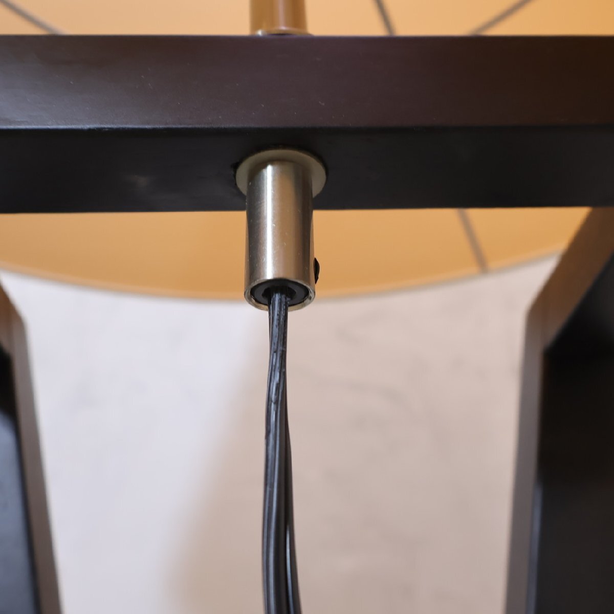 円形のシェードとクロスした脚が魅力的なシンプルモダンなスタンドライト。