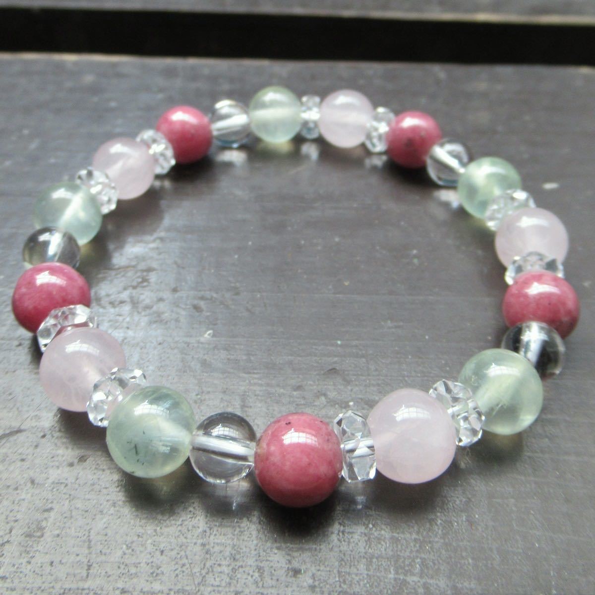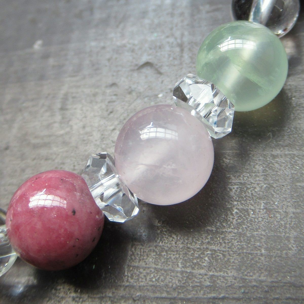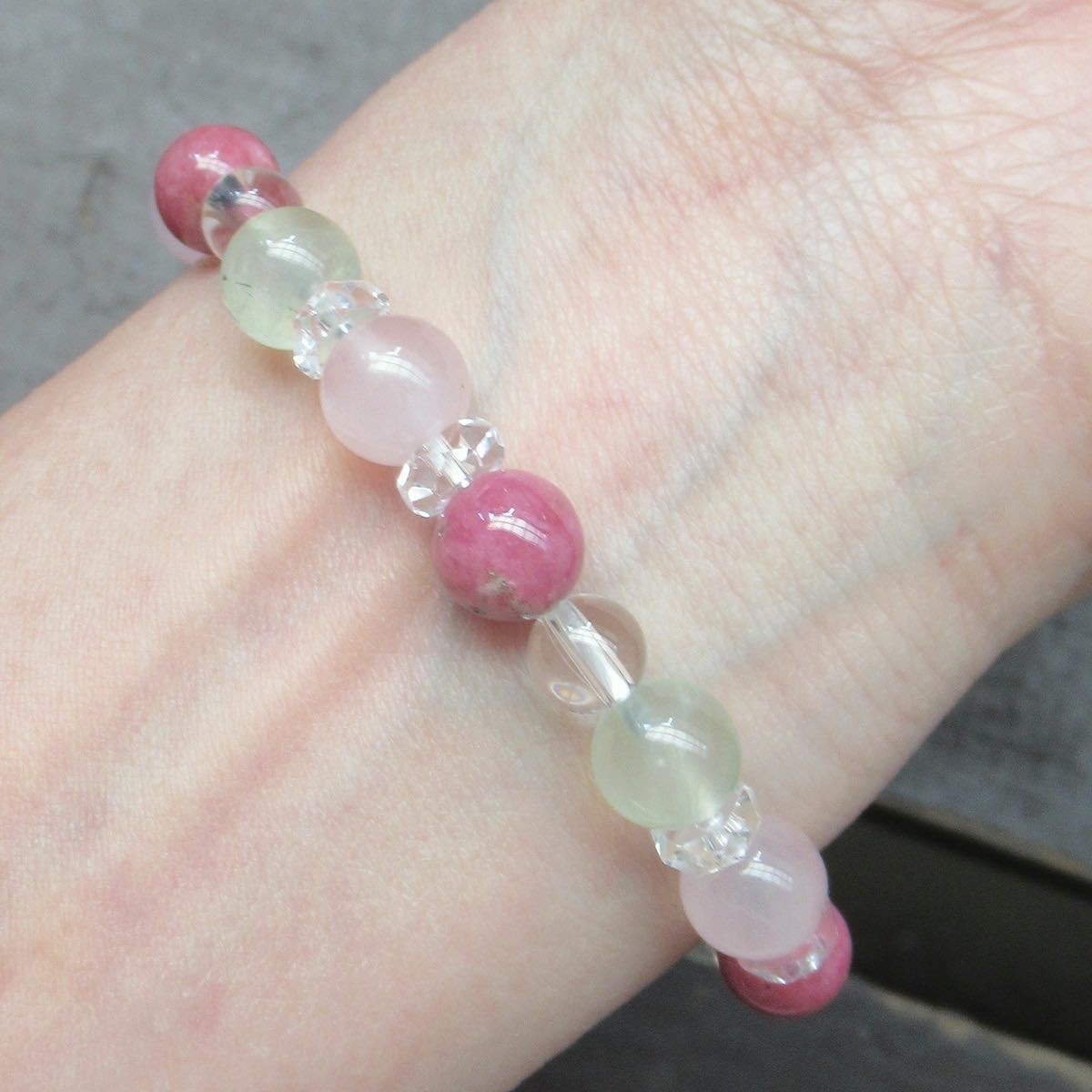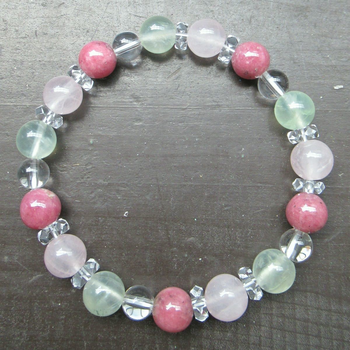 ローズクォーツxロードナイトxプレナイトブレスレット 天然石 パワーストーン