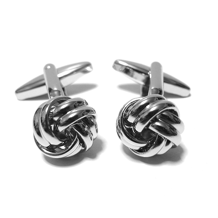 【カフス ボタン/カフリンクス】玉結び 組み紐 くみひも 手毬 装飾 シルバー cuf-0652