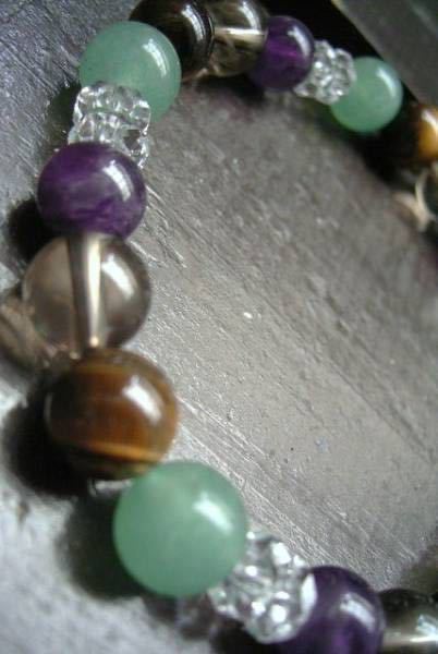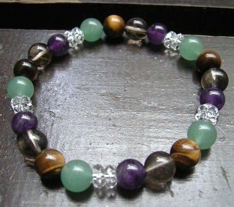 アベンチュリンxタイガーアイxアメジストx煙水晶xカット水晶ブレスレット 天然石 パワーストーン