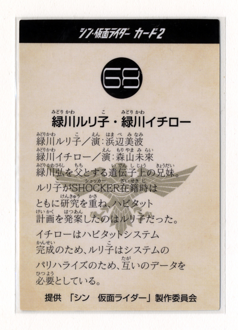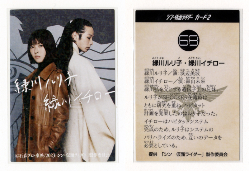 | ◆非売品 №68番 緑川ルリ子・緑川イチロー(パラレルカード・俳優サイン入り版)(浜辺美波 森山未來) カルビー シン・仮面ライダーカード劇場版 入場者特典第5弾 即決 送料無料 | |