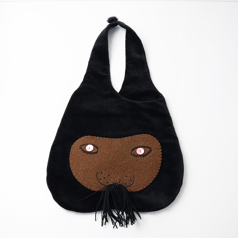 美品 2023-24AW 完売品 ミナペルホネン mina perhonen usa bag ウサバッグ 大/ブラック かばん 鞄 ウサギ ベルベット【2400014299571】