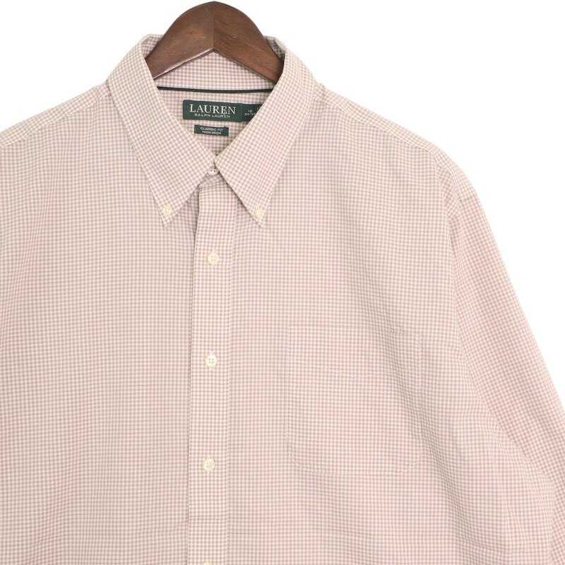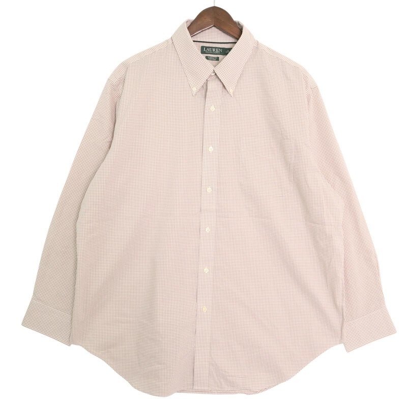 LAUREN RALPH LAUREN ローレンラルフローレン 長袖ボタンダウンシャツ ギンガムチェック柄 メンズ18 XXL ベージュ系 hsc-0025n