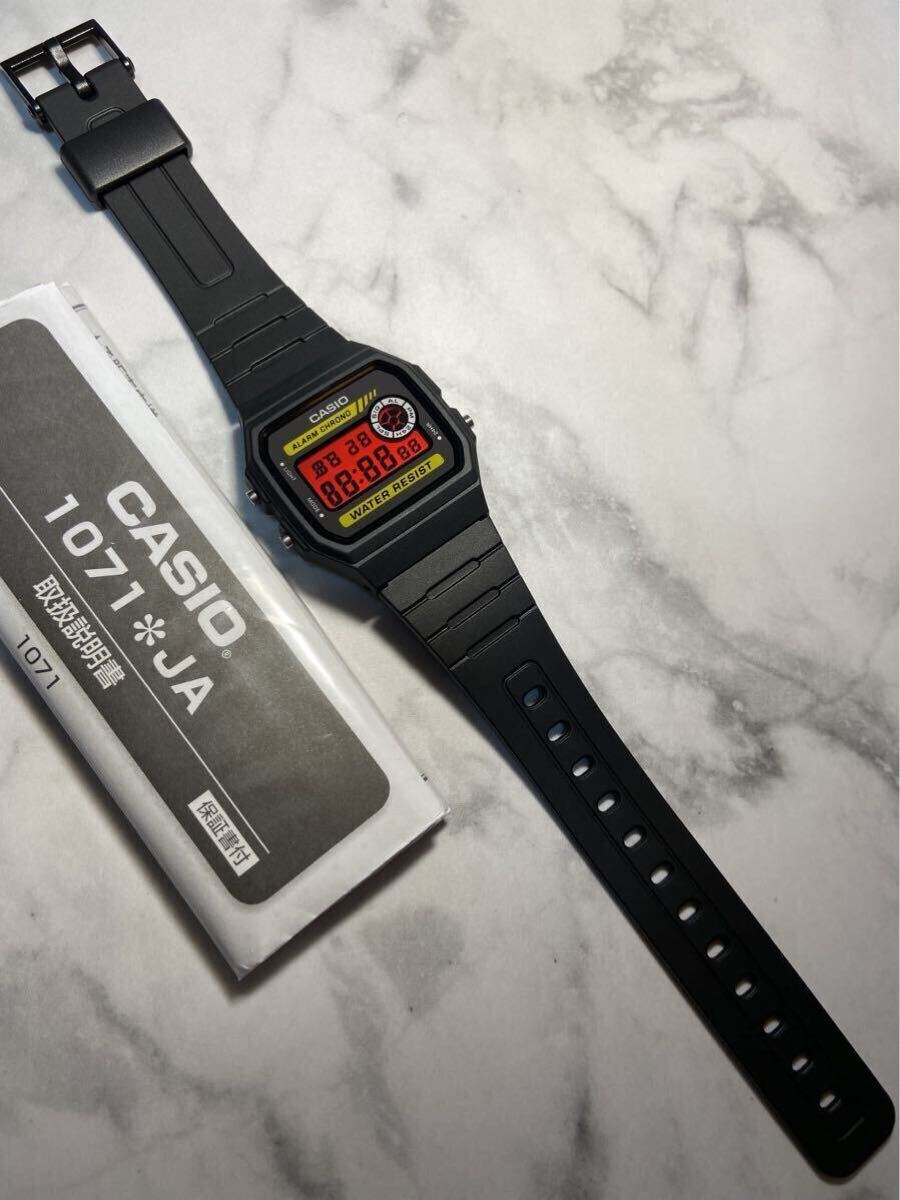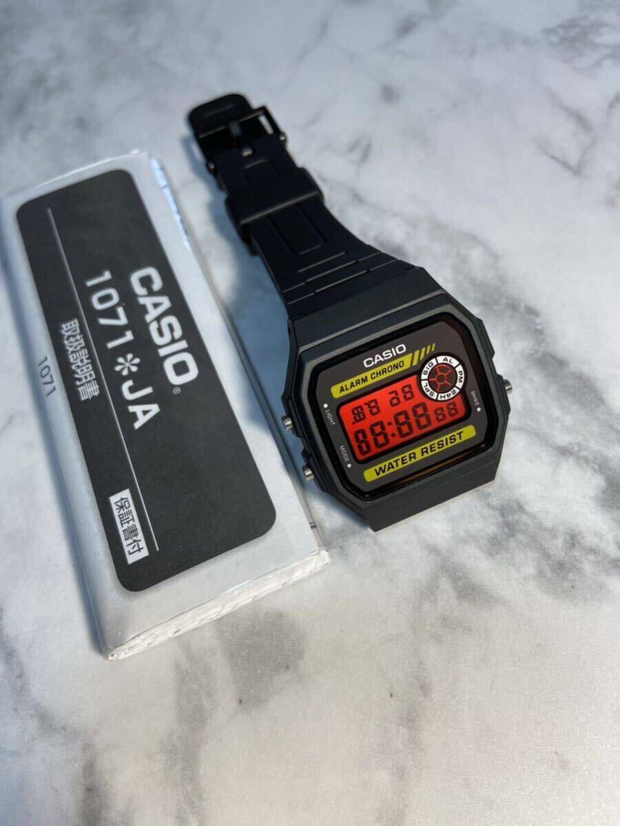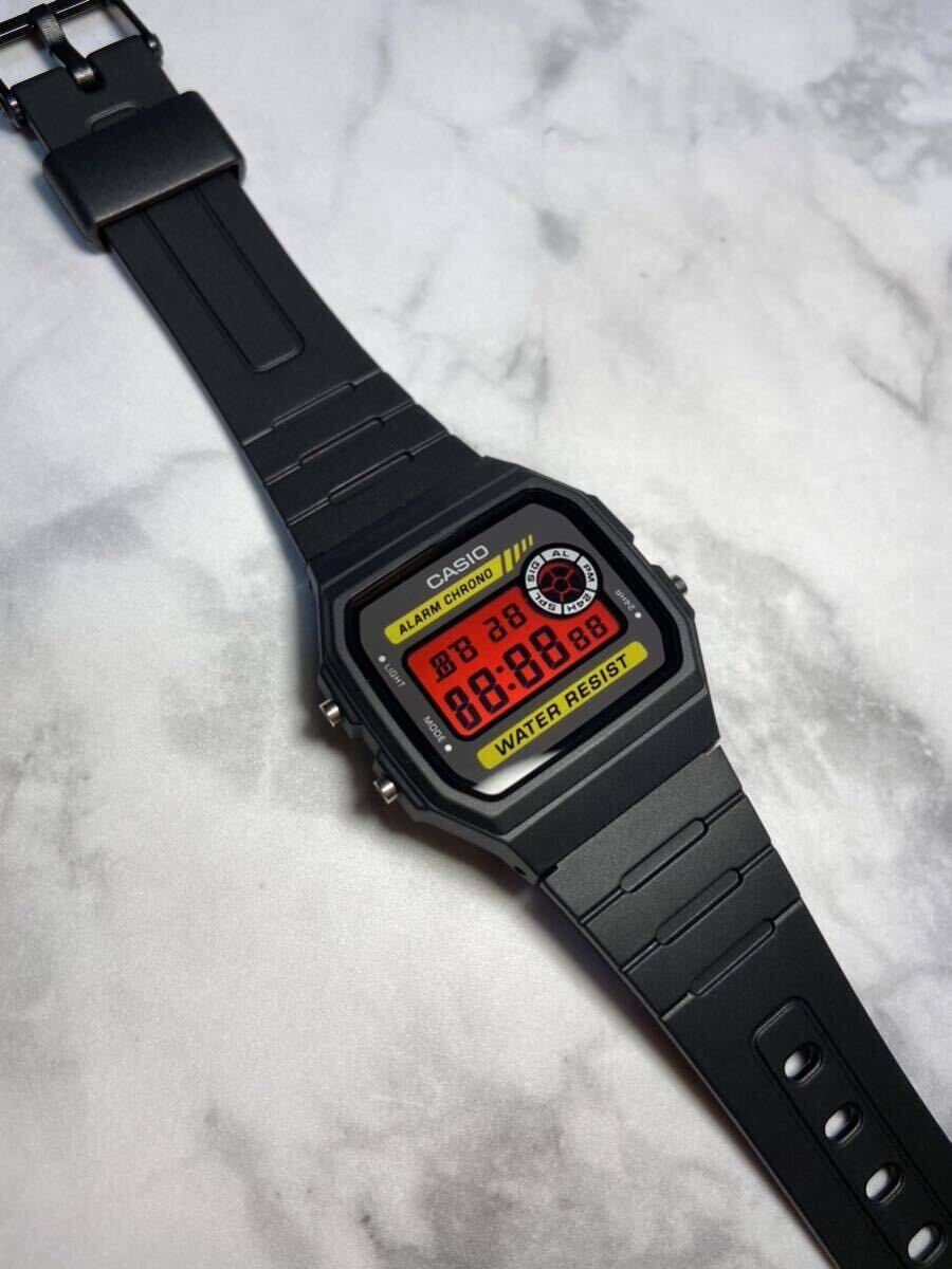 モードインジケーター付きで差し色の黄色がスポーティーな雰囲気のモデルF94WAの液晶を赤に変更したカスタム仕様です。古着ファッション、ビンテージファッション、抜け感コーデに相性抜群です!