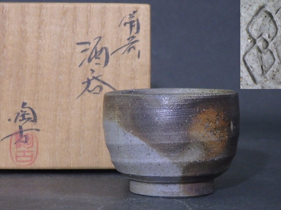 ★小西陶古【備前酒呑 共箱】状態良好! 直径6.2cm 高さ4.6cm ぐい呑み 酒盃 酒器 日本酒 和食器 煎茶道具 中国茶器