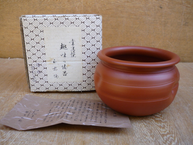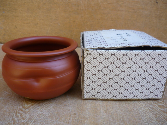 建水 茶道具 常滑焼 未使用品・共箱 直径≒14.5cm(内径10.5cm)x高さ9.5cm 収納していたもので一度も使用していません。画像写真で状態をご確認の上ご判断ください。発送には定形外郵便を予定していますが、地域によってゆうパックの方が安く送れる場合には、こちらの方から元払いでお送りします。その場合、お預かりした余分の送料は商品と一緒に返金させて頂きます。