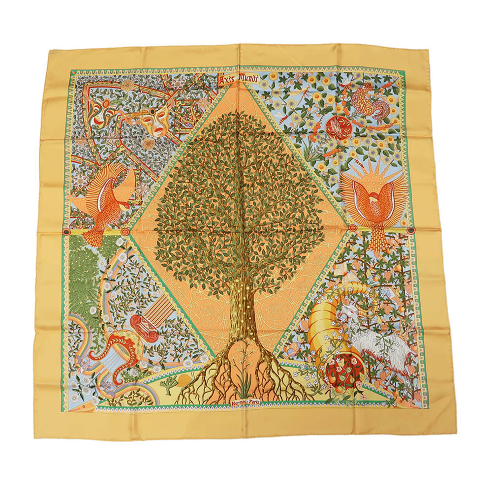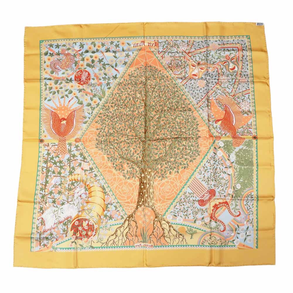 【名東】エルメス カレ90 スカーフ Axis Mundi 世界の中心軸 シルク100% マルチカラー