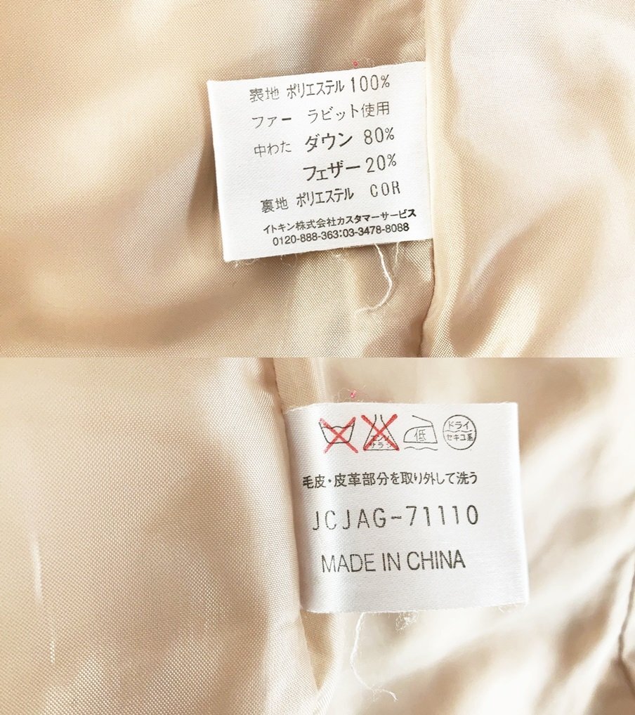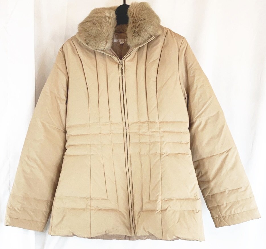 ELLEPLANETE エルプラネット ラビットファー付 ダウン80% ジャケット ジップアップ ベージュ系 サイズ38 M~Lぐらい QI-5