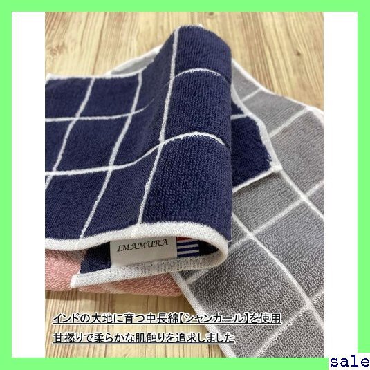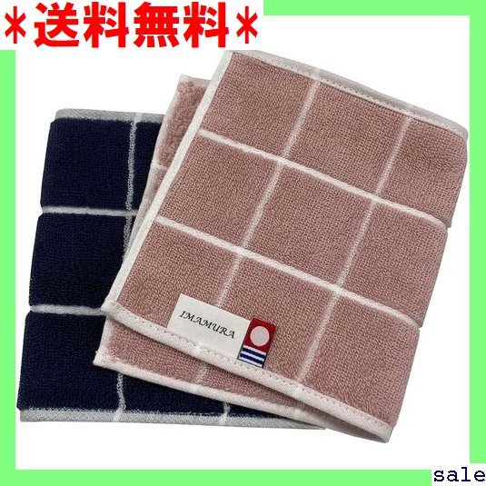 イマムラ IMAMuRA 今治タオル ハーフハンカチ 2枚組 ネイビー・ピンク 約13x25cm グラフチェック 日本製 吸水 123