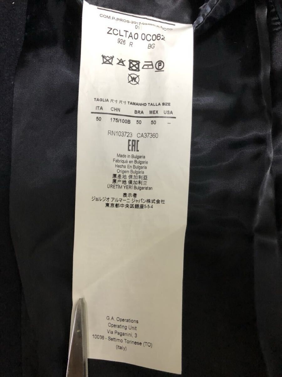 美品◆ARMANI COLLEZIONI T LINE チェスターコート カシミヤ混ウール WATER REPELLENT サイズ50 アルマーニ コレッツィオーニ