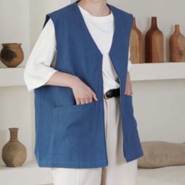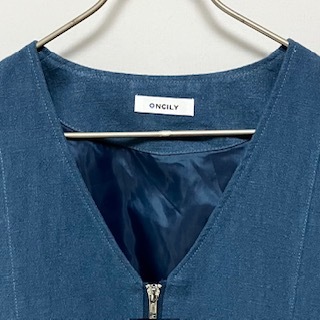 ★ 即決・送料無料 ★ 美品 ONCILY オンシェリー ノーカラースラブベスト M ブルー