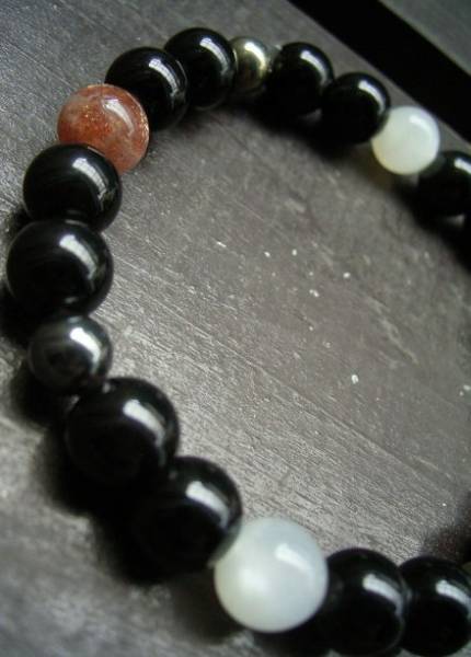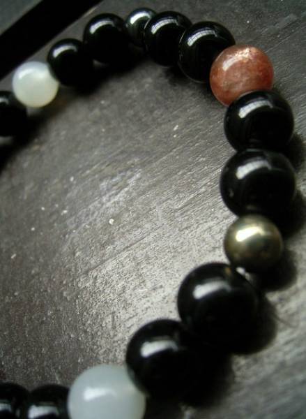 サンストーンxムーンストーンxオブシディアンxパイライトブレスレット 天然石 パワーストーン